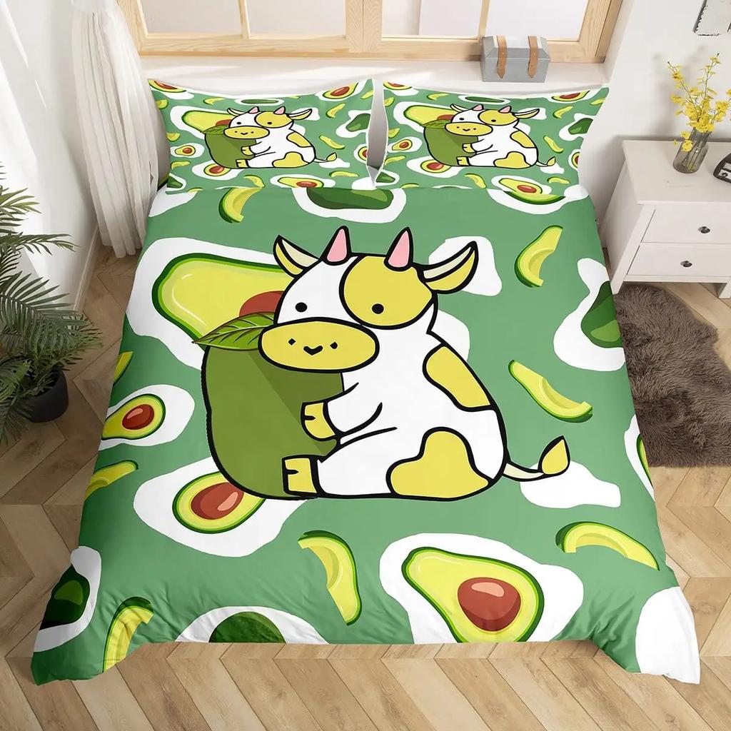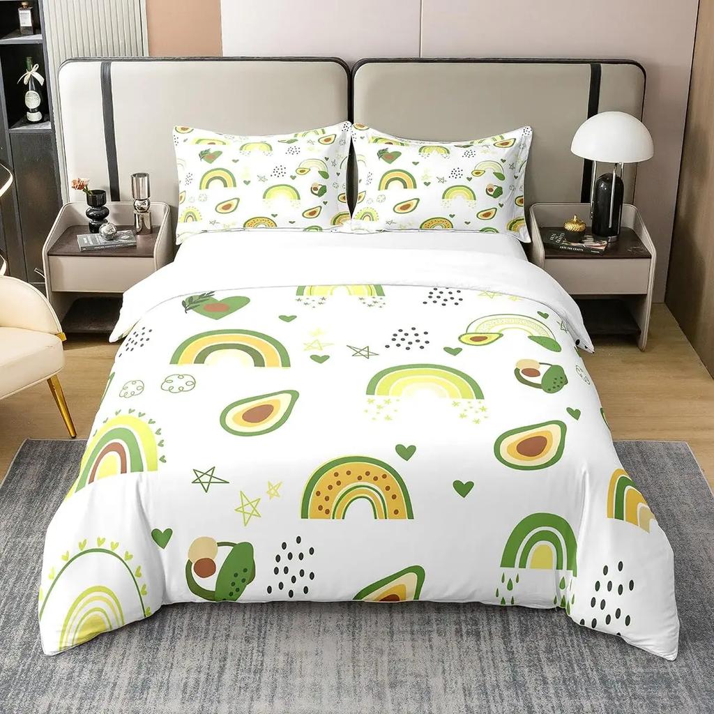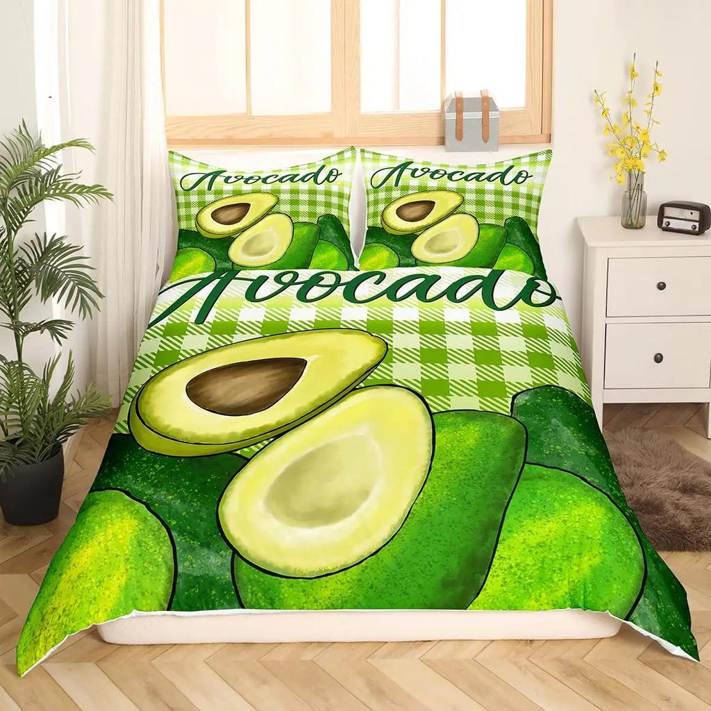 Комплект постельного белья с фруктами, милый мультяшный декор в виде авокадо, комплект из 3 предметов постельного белья с 2 наволочками, размер Queen King, полный размер, цвет паприка зеленый