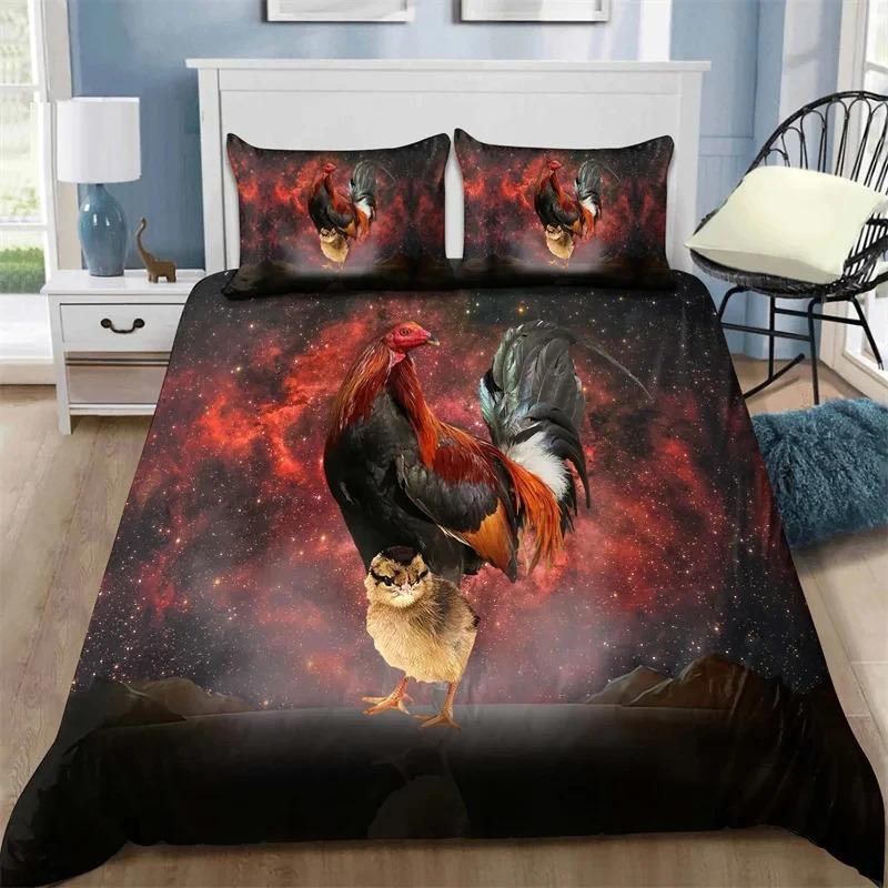 3D-принт Петух Ферма Животное Мультфильм Комплект постельного белья Пододеяльник Постельный комплект Одеяло Наволочка Одеяло размера king-size