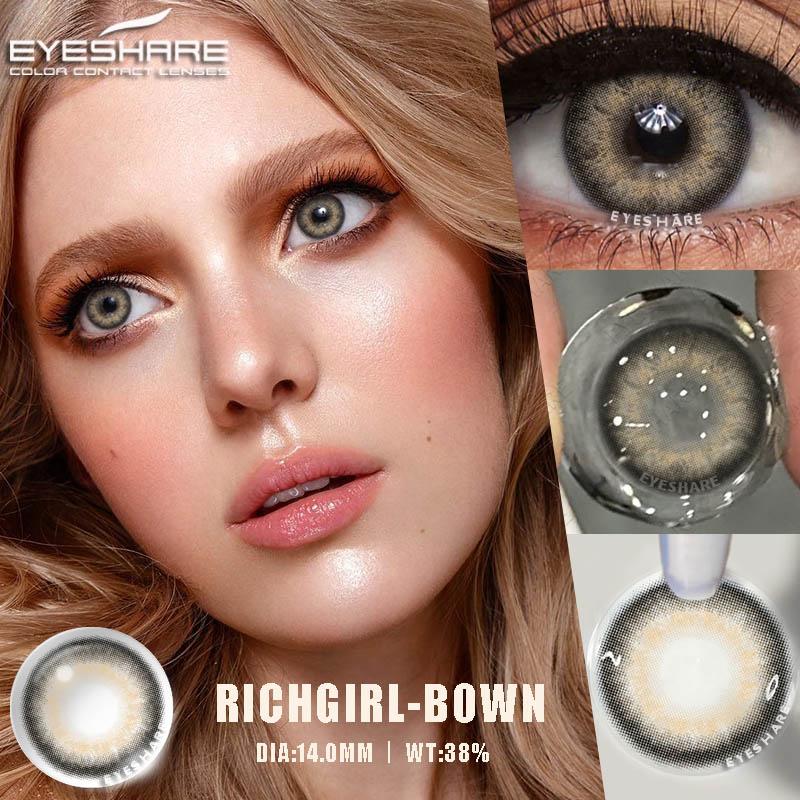 Eyeshare 1 пара коричневых цветных контактных линз, натуральная косметика для глаз, мягкая красота, годовое использование, коричневые линзы для глаз