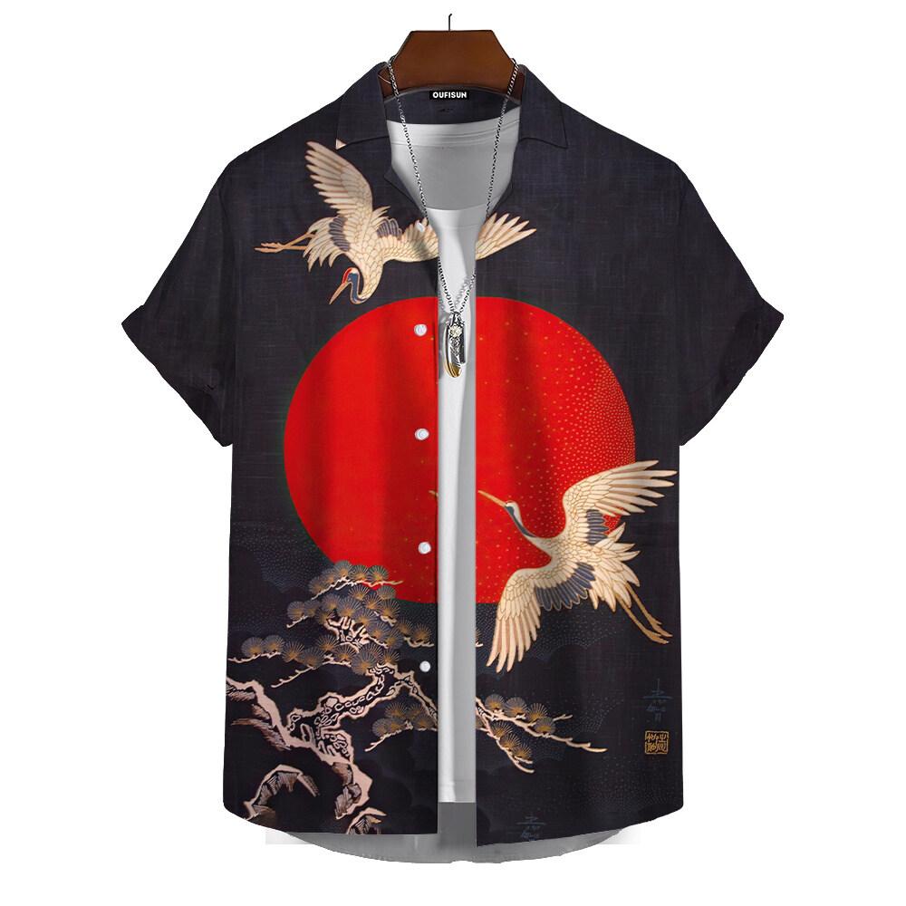 Летние мужские рубашки с коротким рукавом, японский стиль, принт, уличный тренд, мужские рубашки, свободные топы — купить товар онлайн с бесплатной доставкой до всему миру!