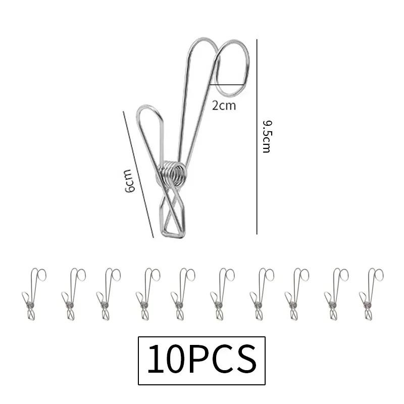 10 шт. прищепок из нержавеющей стали с крючками, металлические пружинные зажимы с крючками, универсальные подвесные зажимы для офисов, кухонь, ванных комнат