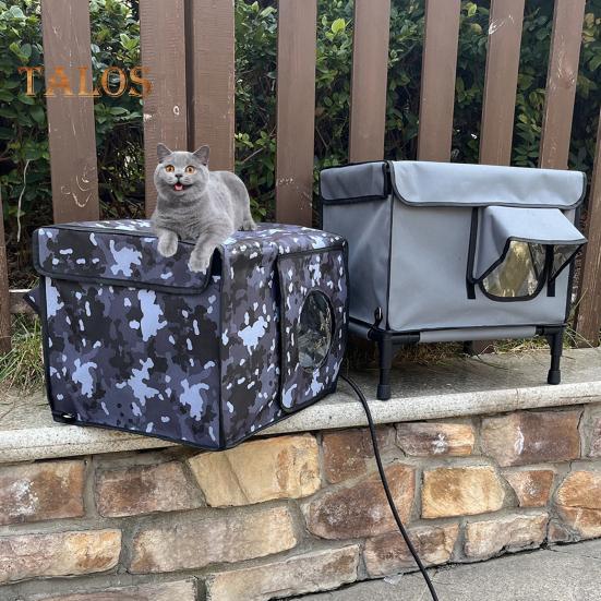 Идеальный подарок для любителей кошек: Уличный домик для кошек изготовлен из высококачественного водонепроницаемого материала, который является водонепроницаемым и долговечным и может выдерживать суровые условия, такие как дождь и ветер, обеспечивая надежную защиту от непогоды.. Обогреваемый домик для кошек станет идеальным подарком для любого любителя кошек, защищая их от непогоды.