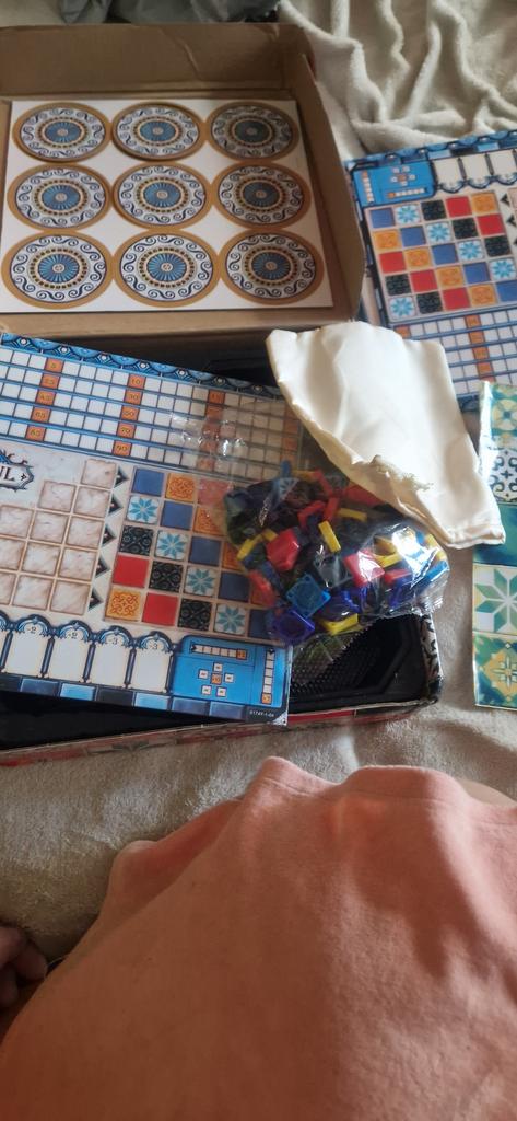 Коробка мятая. Сама игра не помялась. Картон плотный, цвета яркие. Детали игры (плитка) односторонние. Заказом довольна. Играть приятно. Пришла очень быстро.