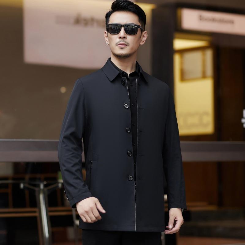 Осенняя ветровка из шелка тутового дерева на пуговицах, мужская куртка средней длины в деловом стиле, повседневная, новая, для пап среднего возраста, топ высокого класса