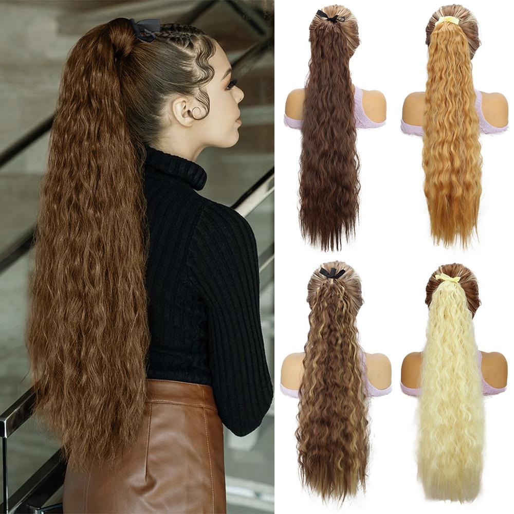 MISSQUEEN Синтетические двойные ремешки для наращивания хвостиков, длинные волнистые вьющиеся хвостики, обертывание вокруг хвостика, термостойкие для женщин, одежда для косплея