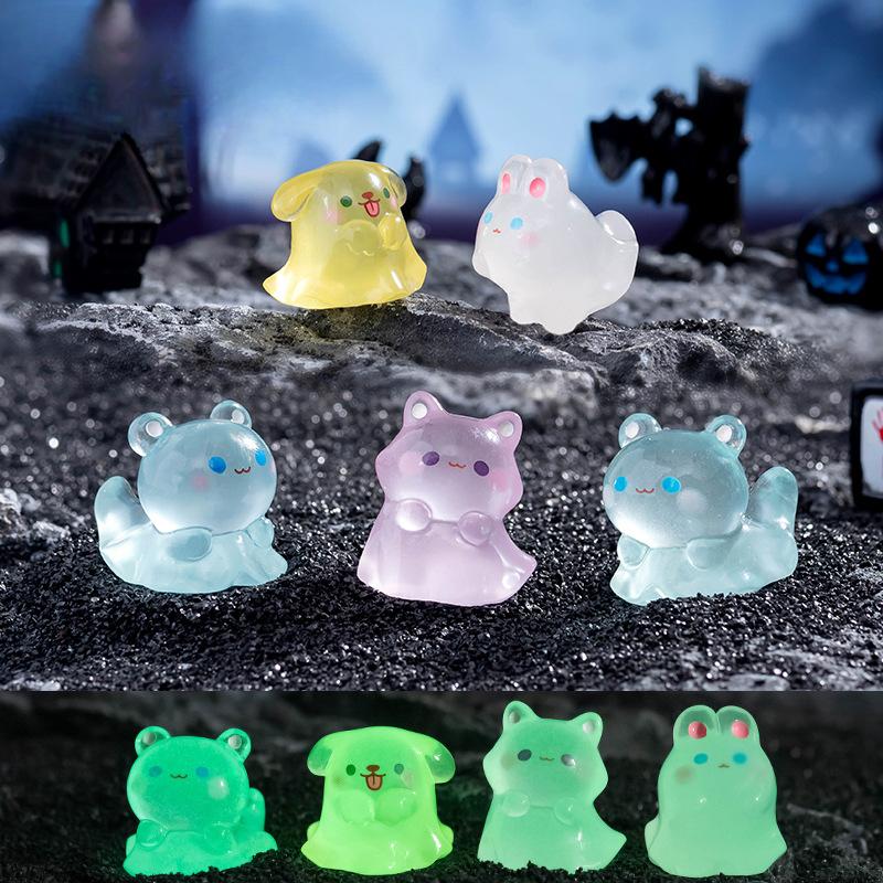 Микропейзаж мультяшный милый светящийся в темноте кролик котенок собака животное призрак смола настольное украшение аксессуары