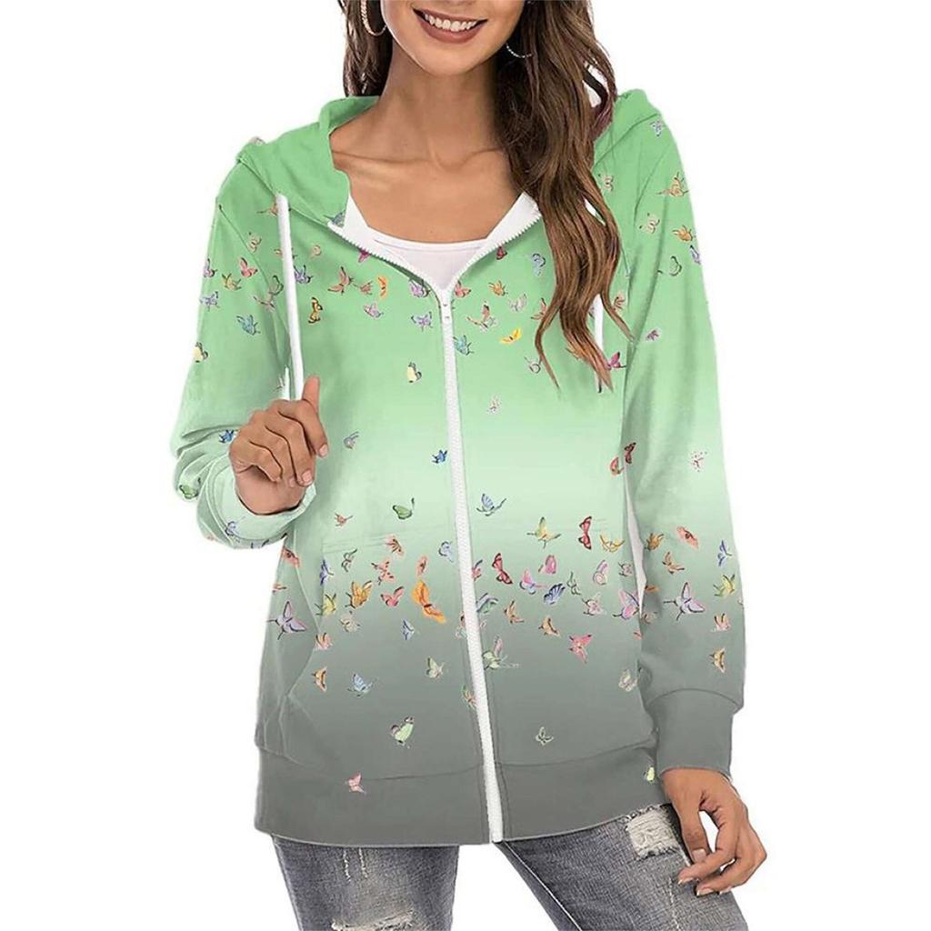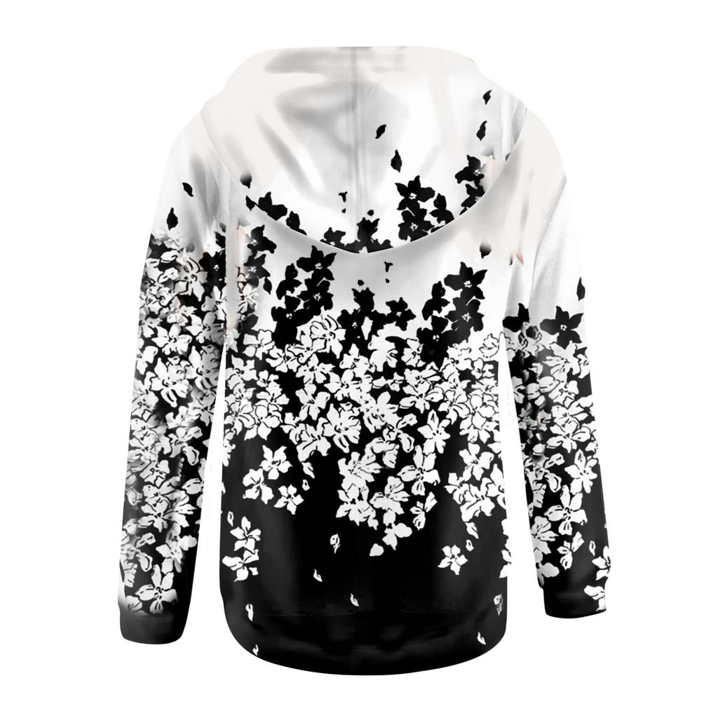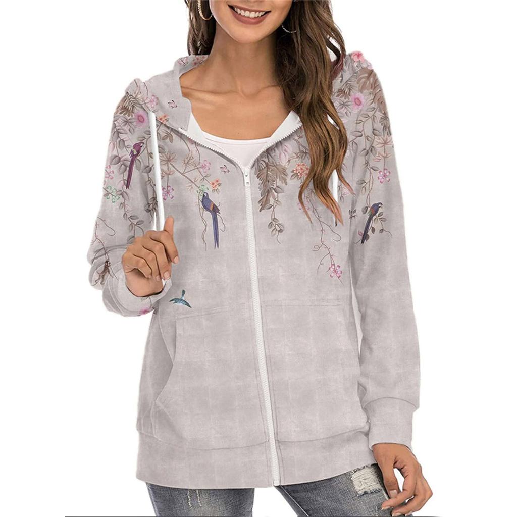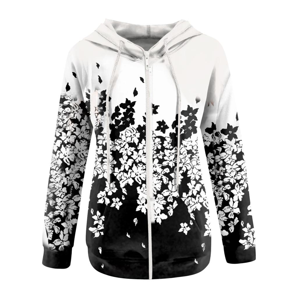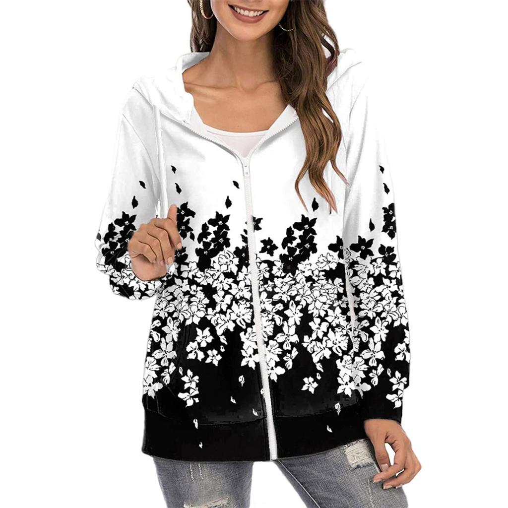 Женская повседневная толстовка с капюшоном на молнии с цветочным принтом, свободная куртка с длинными рукавами и пальто с карманами