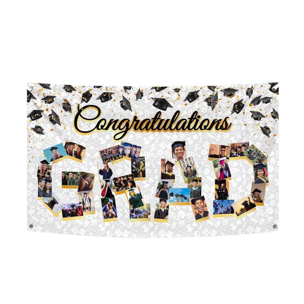 Описание продукта Отпразднуйте выпуск 2024 года с помощью нашего баннера с изображением «Поздравления для выпускников» — потрясающего сокровища размером 72x44 дюйма, сочетающего в себе элегантность и индивидуальность.. Этот баннер — больше, чем просто украшение; это визуальная дань достижениям и воспоминаниям выпускников. Классическое сочетание цветов создает изысканную и праздничную атмосферу, идеально дополняя радостное событие.. Этот настраиваемый баннер позволяет стильно продемонстрировать выпускной класс, показывая персонализированные фотографии, передающие суть академического путешествия.