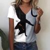 3D забавные кошки принт футболки женские V-образный вырез короткий рукав повседневная мода кавайная графика футболка свободного покроя женская одежда для девочек