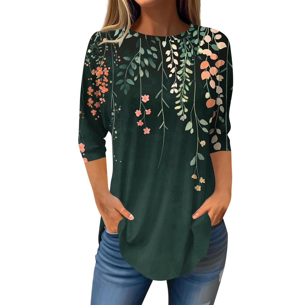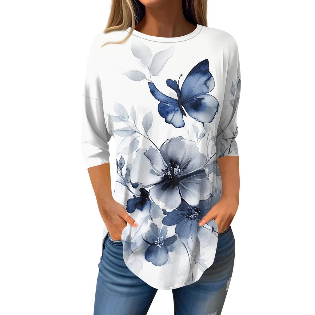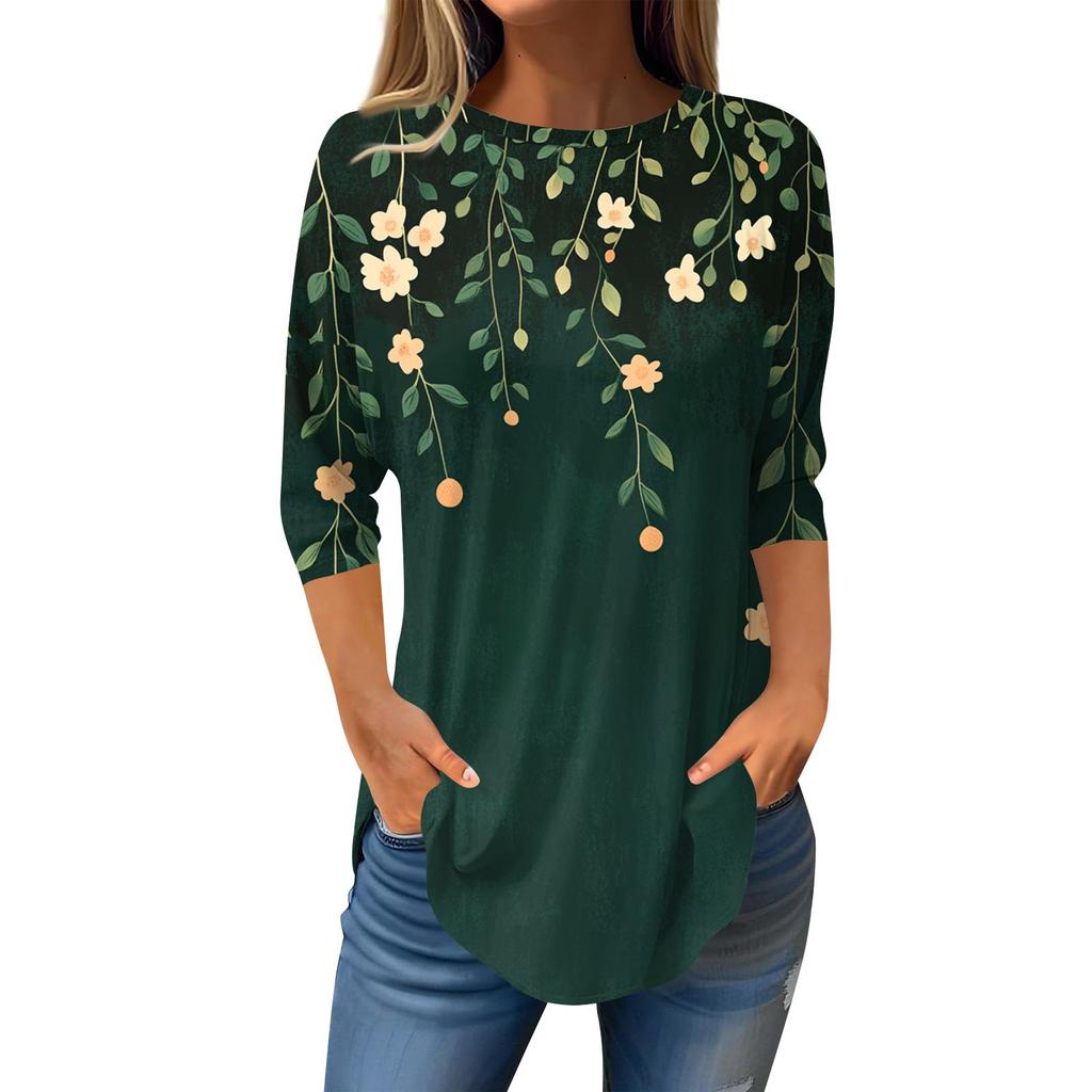 Рубашки с рукавом 3/4 для женщин, милые топы, футболки с рисунком, блузки, повседневные базовые топы больших размеров, пуловеры