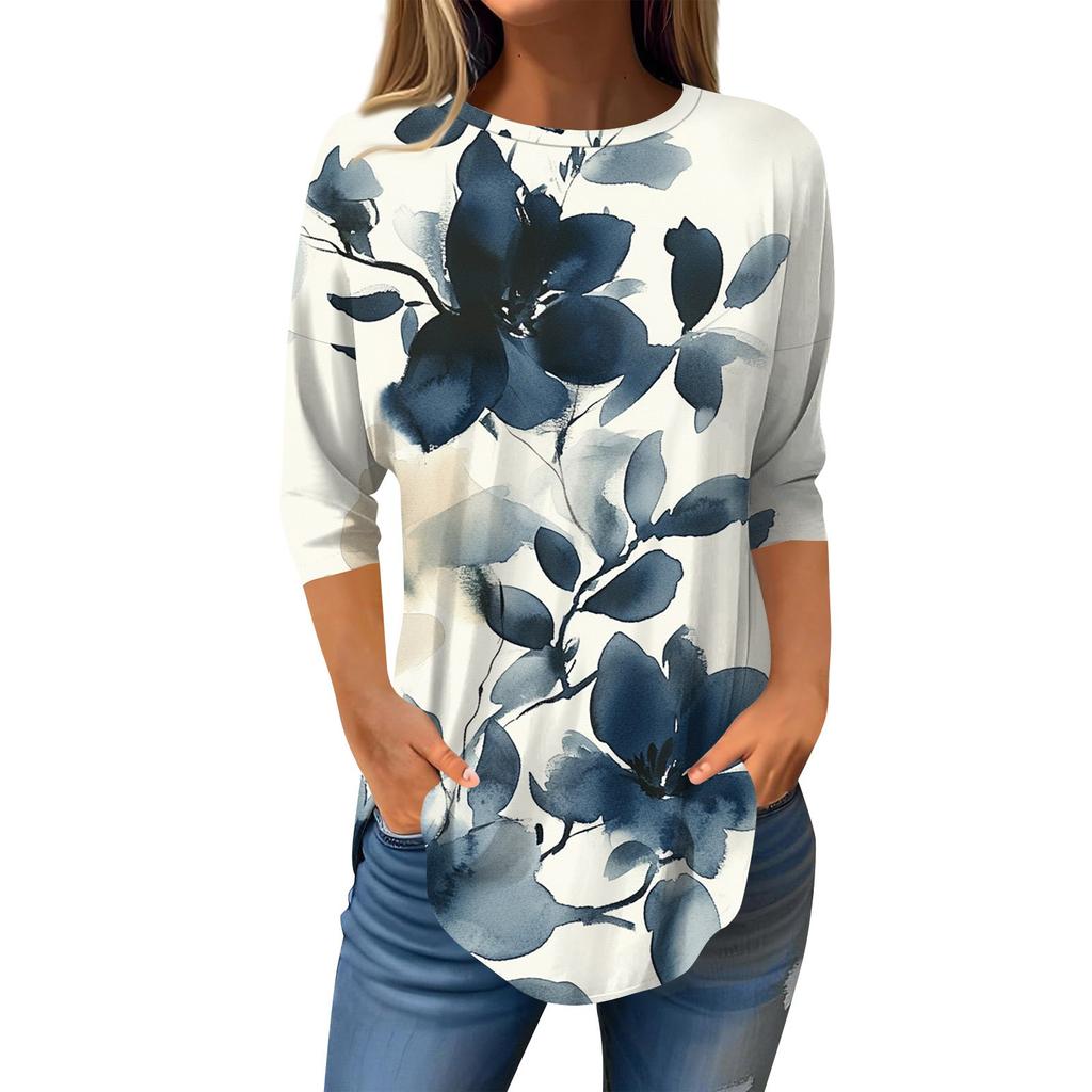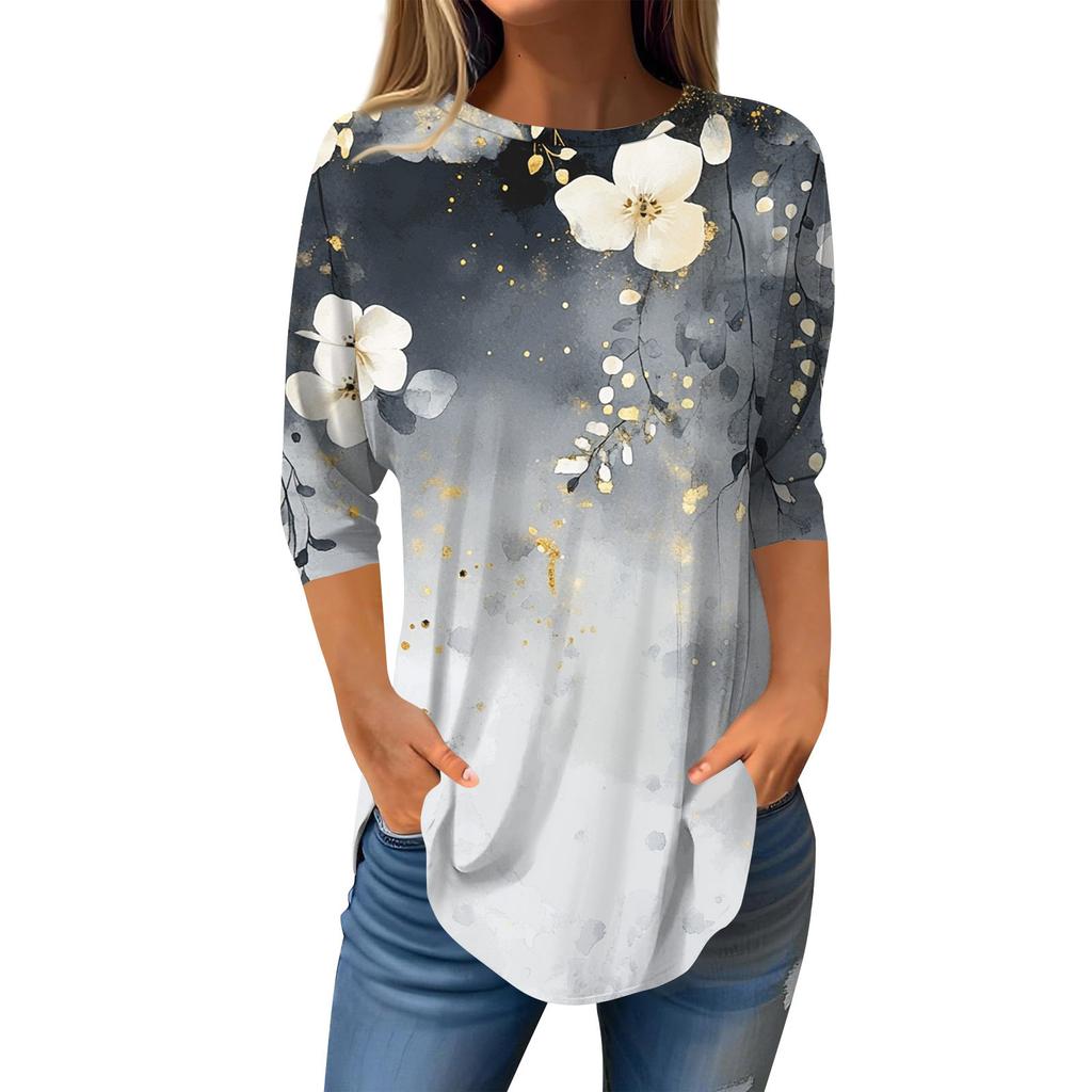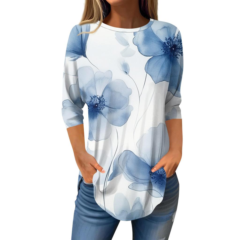 Рубашки с рукавом 3/4 для женщин, милые топы, футболки с рисунком, блузки, повседневные базовые топы больших размеров, пуловеры