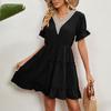 Женское платье-торт с V-образным вырезом и коротким рукавом, кружевное, пэчворк, повседневное платье, платье для поездок на работу