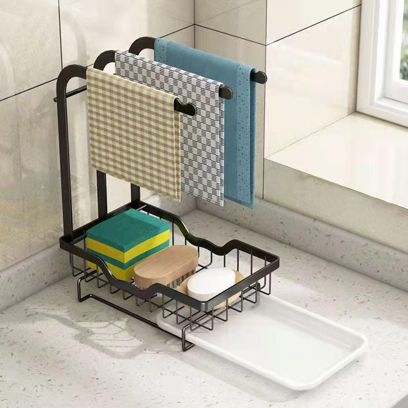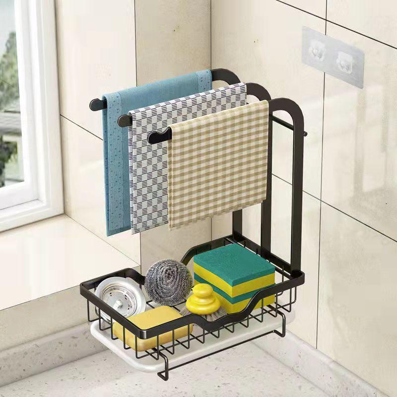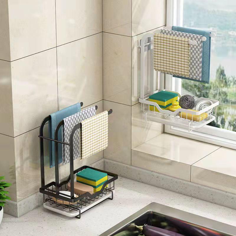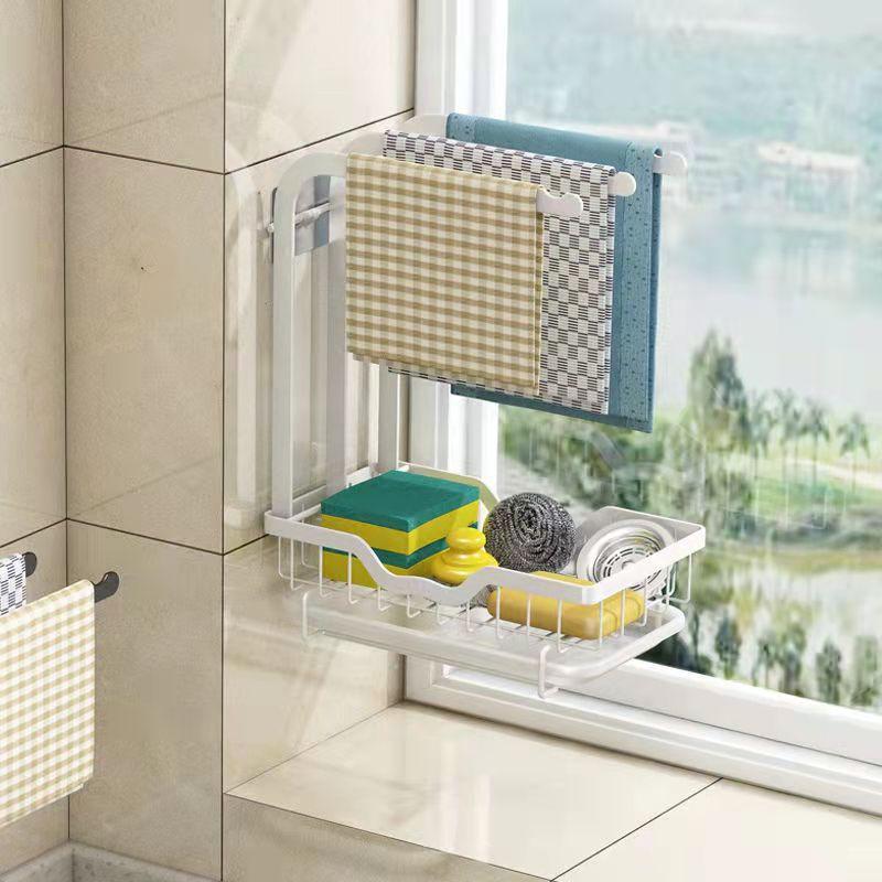 Стеллаж для хранения ткани для посуды Тряпичная полка Кухонная полка Бесплатная перфорированная столешница Настенная стойка для слива губки Раковина Раковина со сливной пластиной