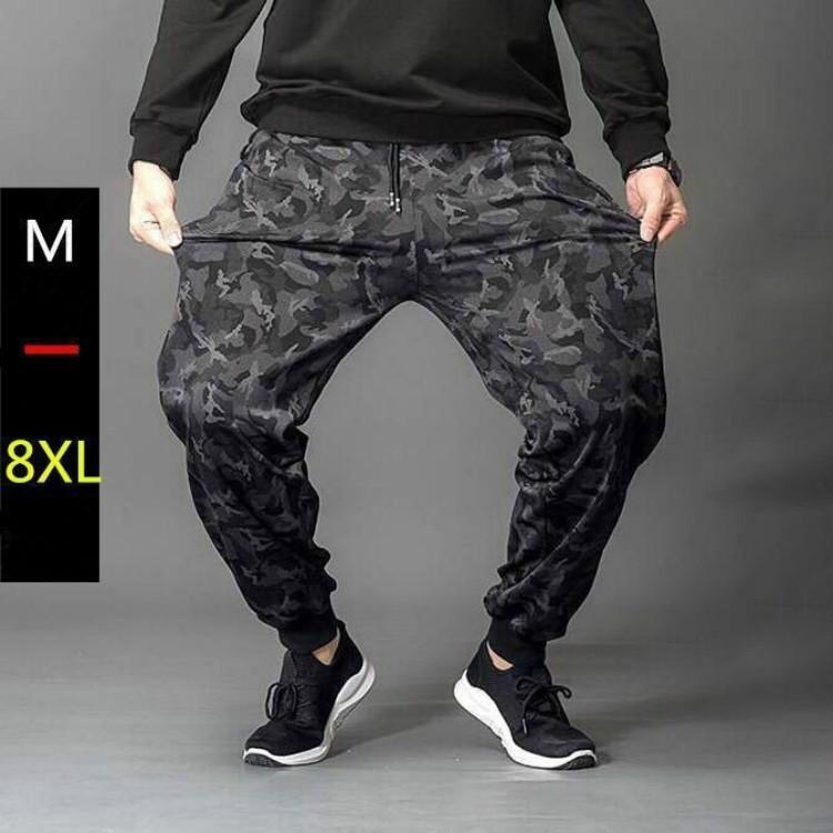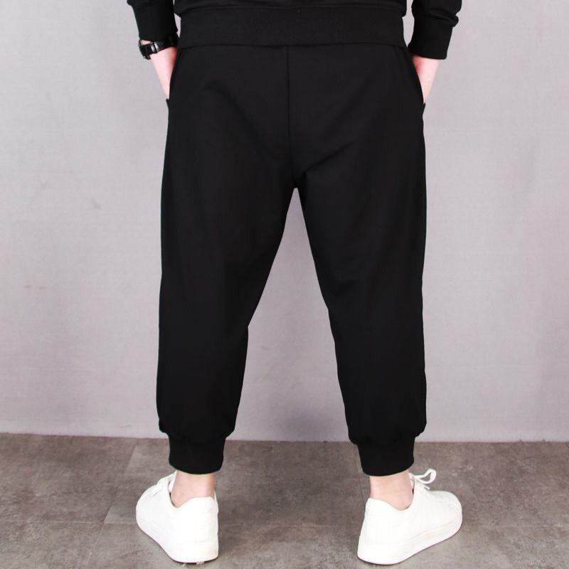 Мужские спортивные брюки больших размеров Plus Fat, свободные повседневные эластичные тонкие 9-точечные брюки