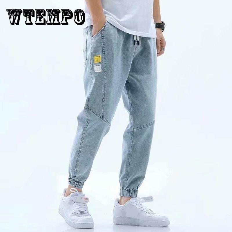 Летние и осенние джинсы на шнуровке с эластичной резинкой на талии, мужские шаровары с девятью точками, свободные трендовые повседневные штаны
