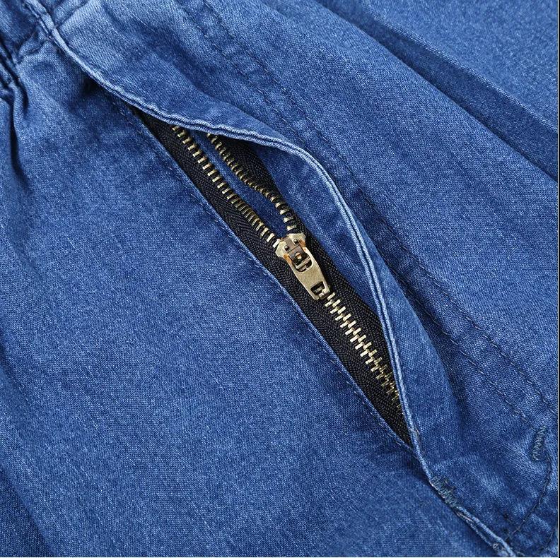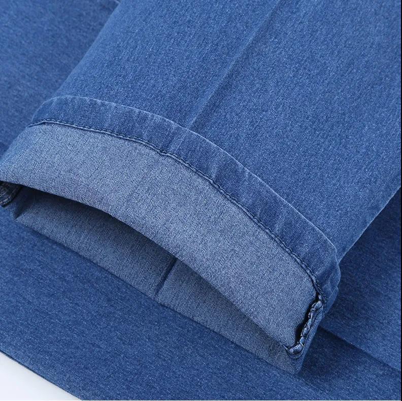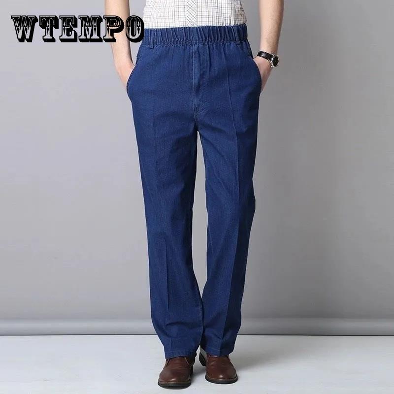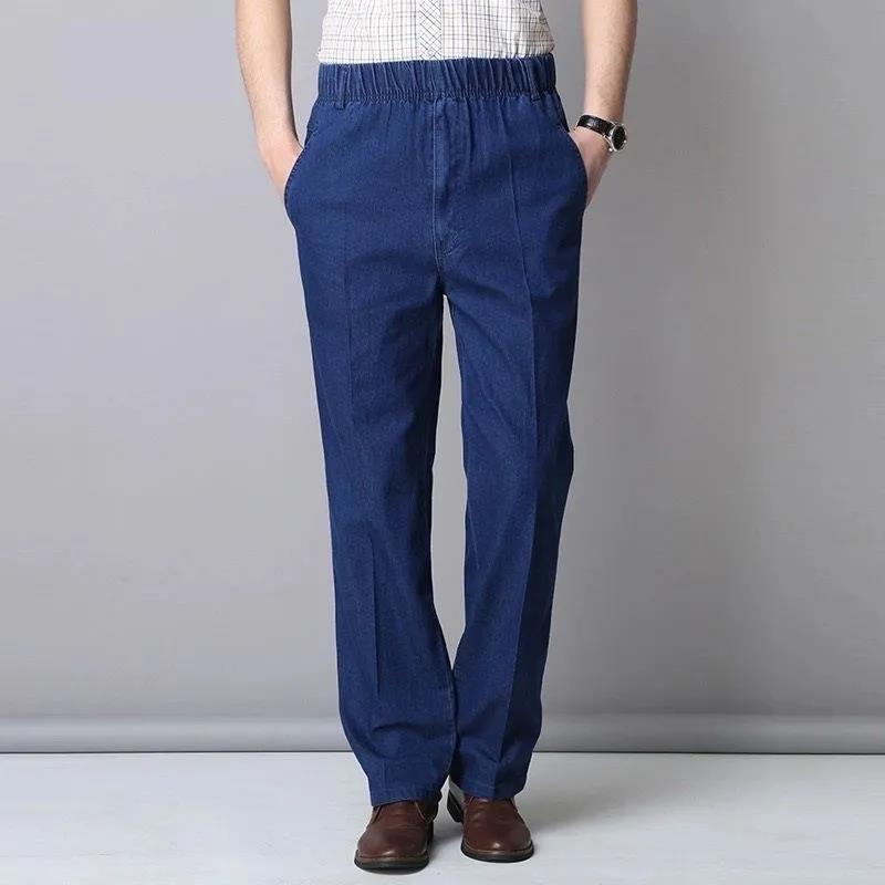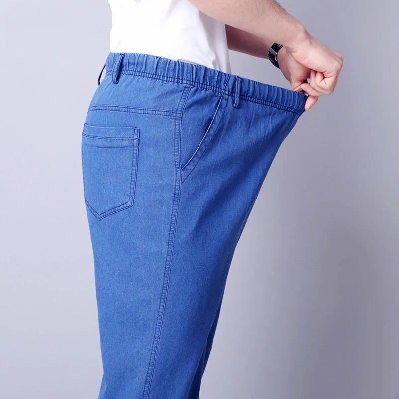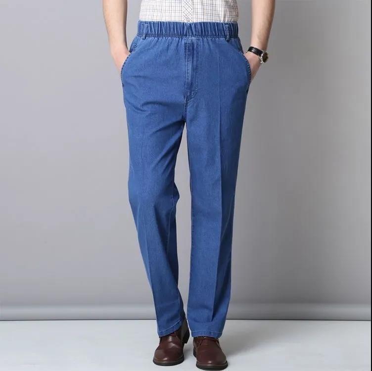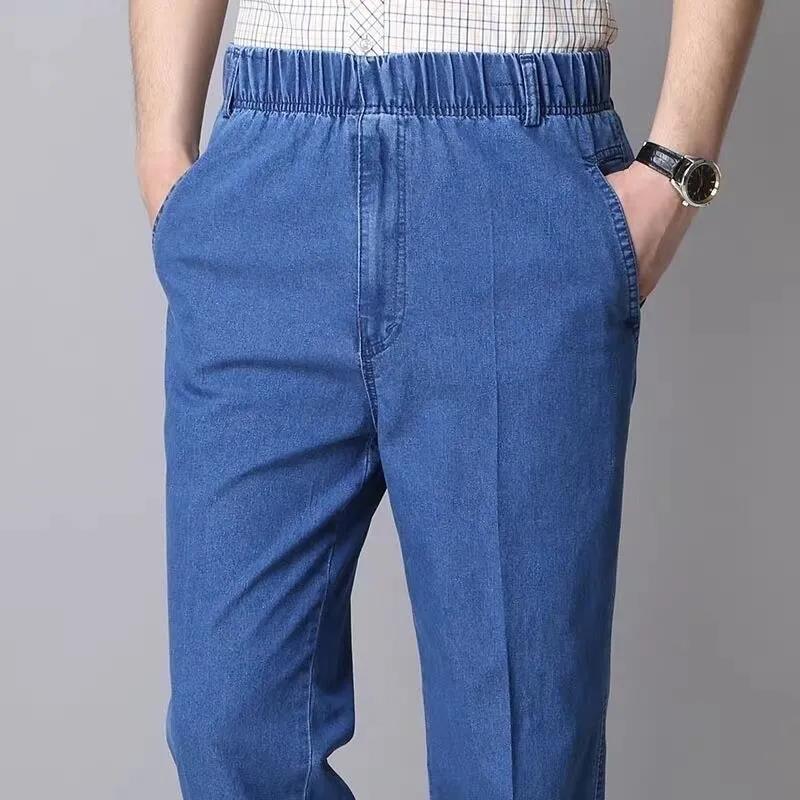 Летние тонкие мужские джинсы с растягивающейся талией для мужчин среднего и пожилого возраста, свободные повседневные хлопковые прямые джинсы с высокой талией