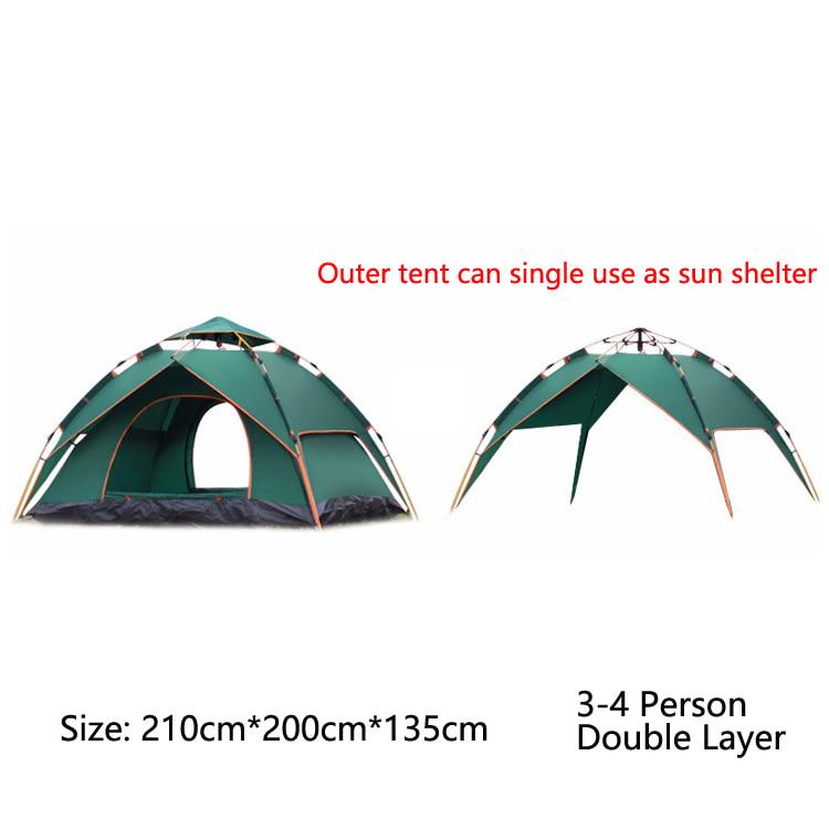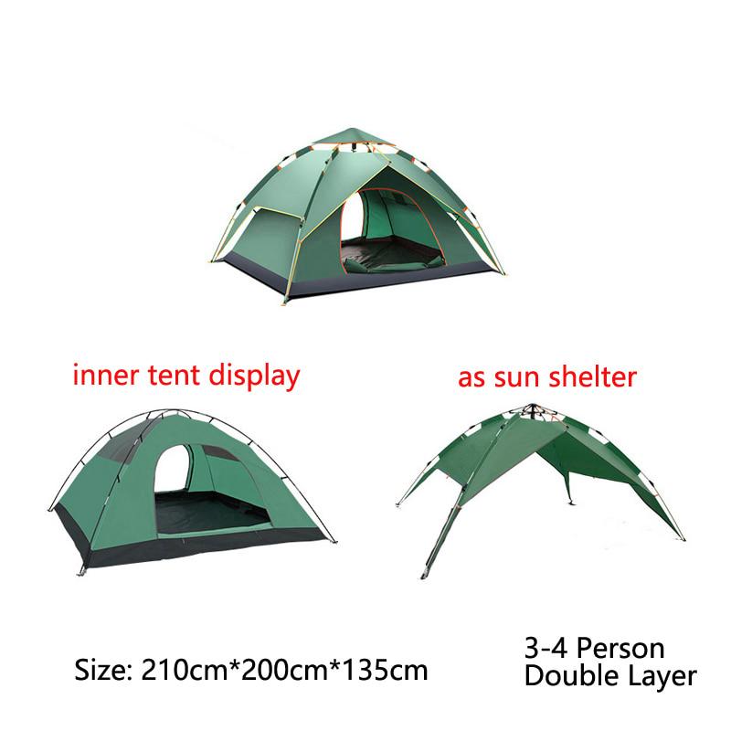 WTEMPO Автоматическая палатка для кемпинга, семейная палатка на 3-4 человека, двухслойная палатка с мгновенной установкой, переносная туристическая палатка для пеших путешествий