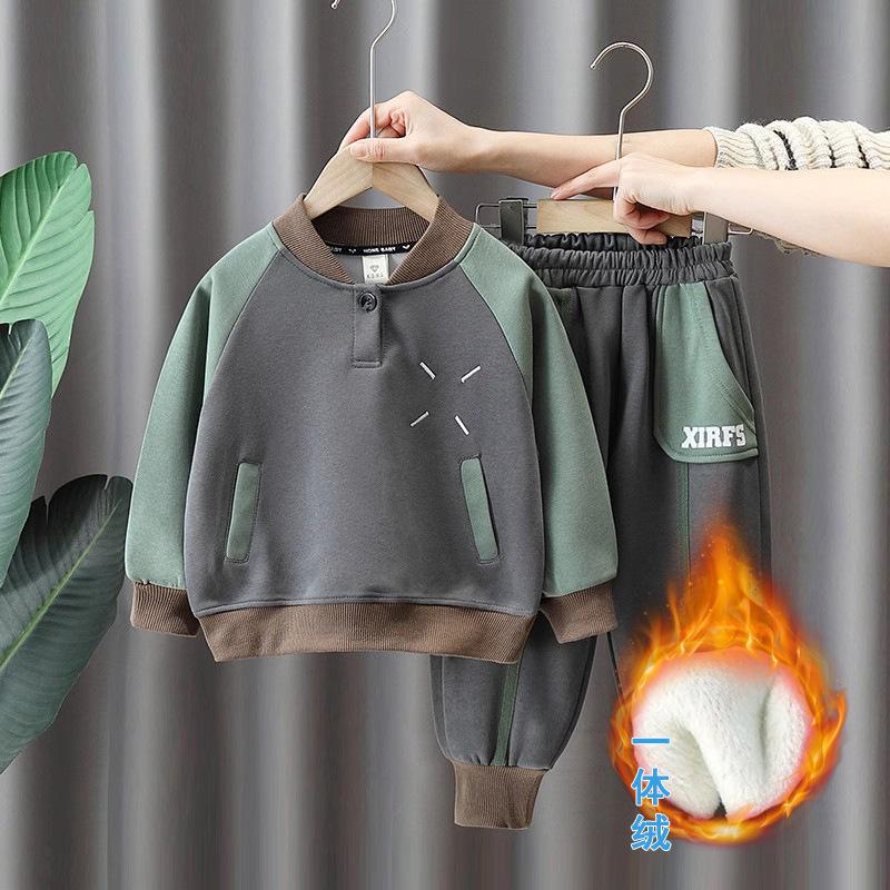 Детский зимний костюм модный мальчиковый осенне-зимний свитер комплект из двух предметов 2024 осенняя одежда бархат мальчиковая зимняя одежда интегрированный бархат