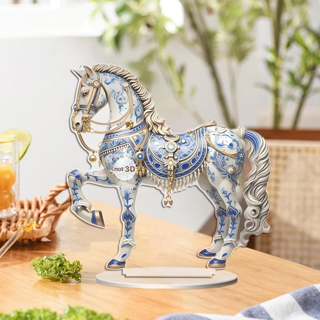 Акриловая фигурка в форме лошади 2D, декоративная фигурка для стола с основанием, скульптура, статуэтка для