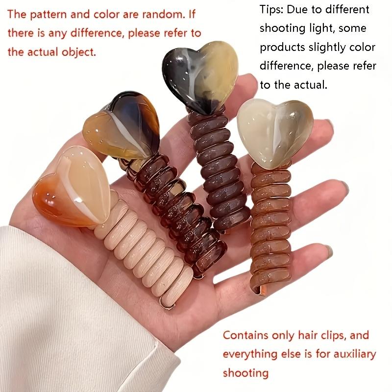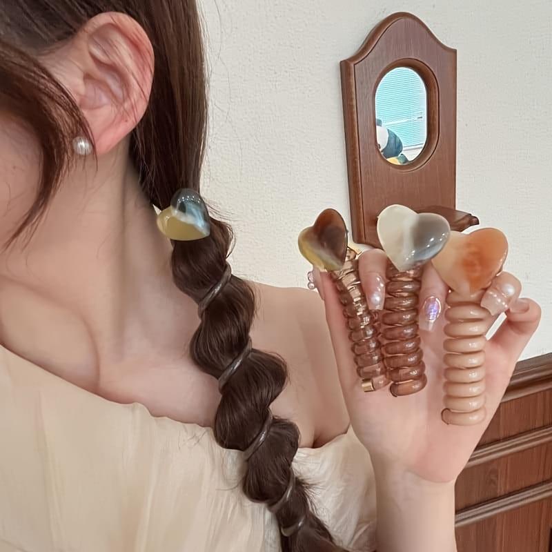 Набор из 4 элегантных спиральных резинок для волос в форме сердца - цветные резинки для волос из смолы, идеальный подарок для нее, резинки для волос