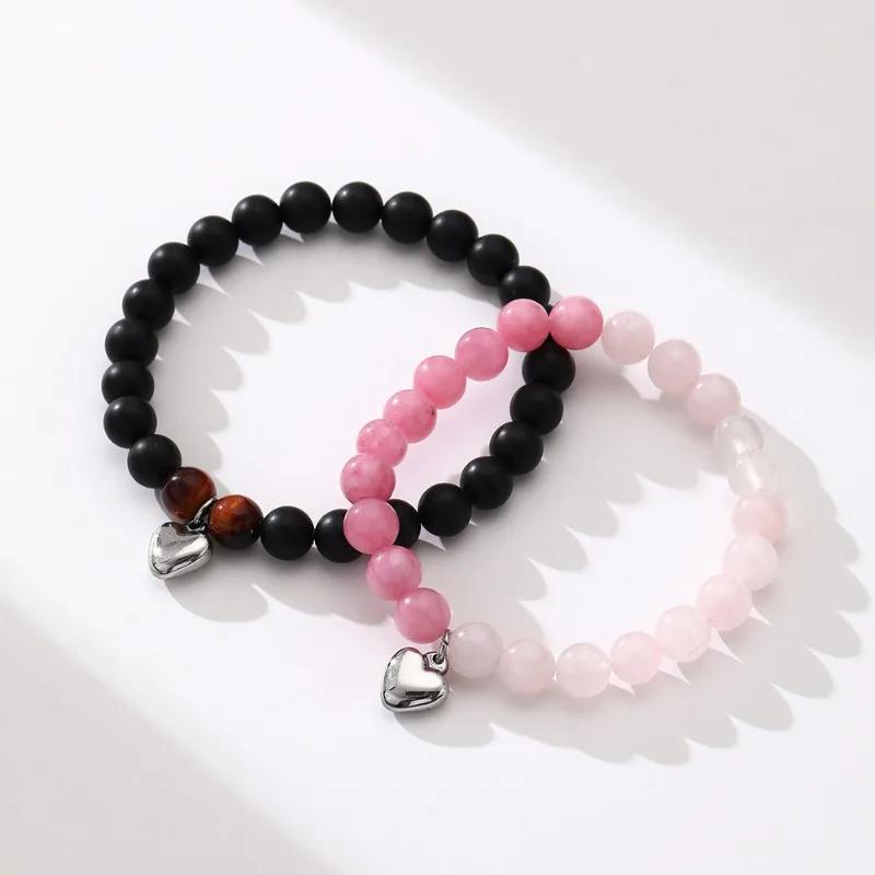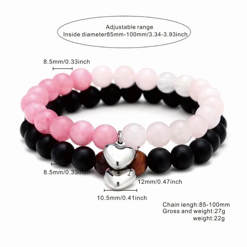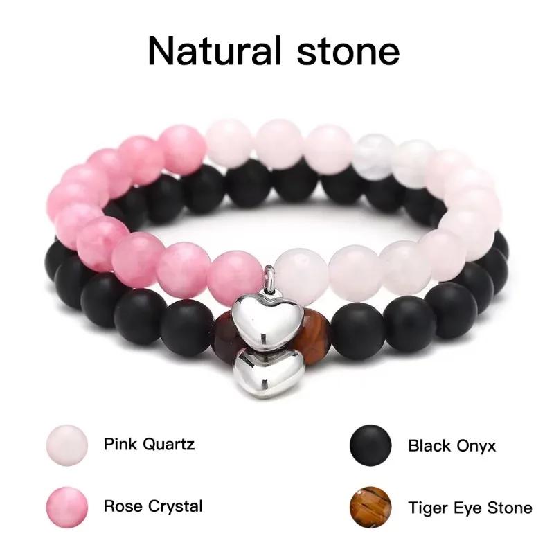 Браслет из натурального кристалла Черный оникс Энергетические браслеты Парный Розовый кварц Бусина Медитация Легкий брелок Модные украшения Ювелирные изделия Подарки для пар