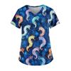 Рабочая форма больших размеров с принтом, топы для женщин, забавные футболки с v-образным вырезом и короткими рукавами, рабочая одежда, футболка с карманами
