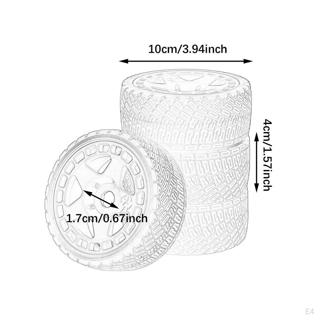 - 【Оптимальный размер】: Каждая шина имеет диаметр 10 см/3,94 дюйма и ширину 4 см/1,57 дюйма, что соответствует вашему радиоуправляемому автомобилю, обеспечивая при этом устойчивость и управляемость на высоких скоростях.