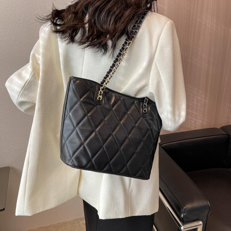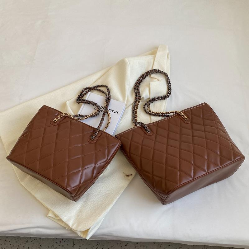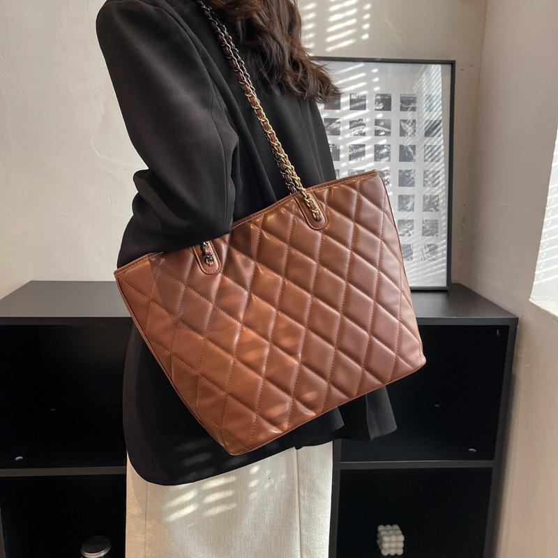 Сумка-сумка с ромбовидной цепочкой, вместительная, женская, новинка 2024 года, модная сумка через плечо, простая повседневная сумка-тоут