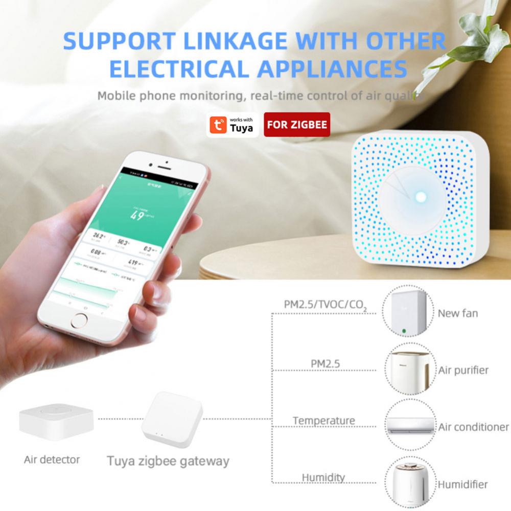Tuya Smart Air Quality Monitor 6-в-1 CO2 Meter PM2.5 Formaldehyde TVOC CO2 Детектор температуры и влажности для домашнего офиса