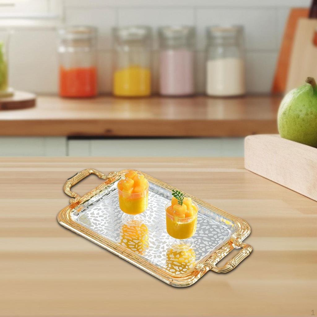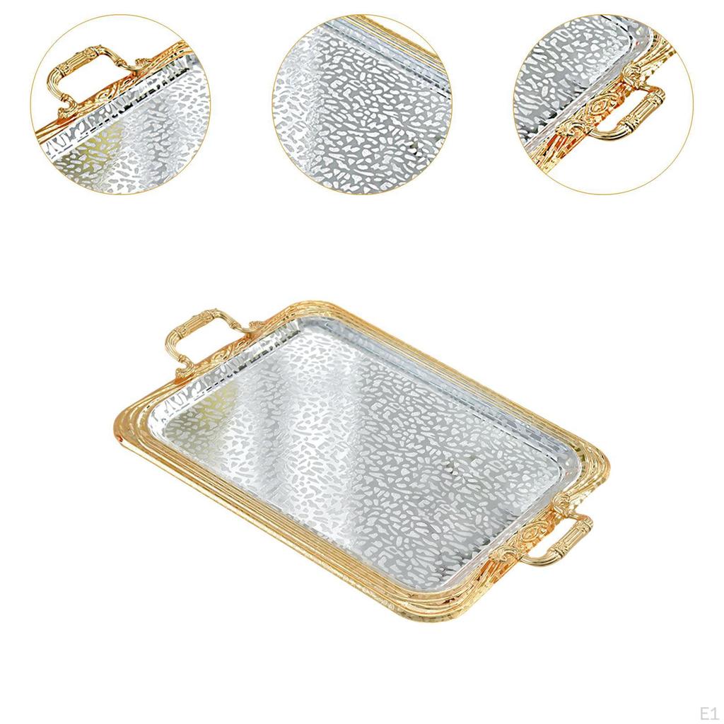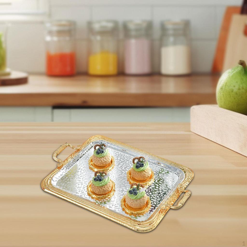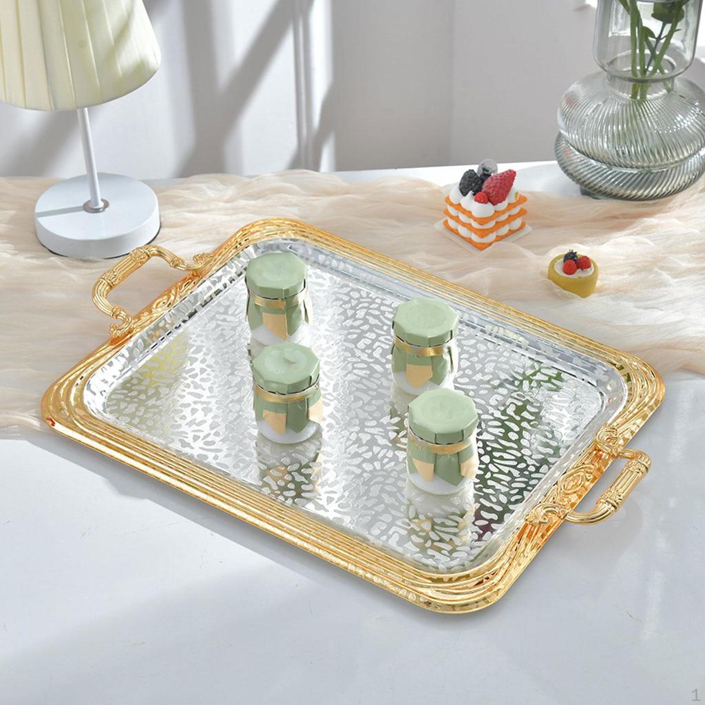 - 【Элегантный дизайн】: Поднос для сервировки отличается изысканным дизайном в европейском стиле с замысловатым рельефом и роскошной золотой отделкой, что делает его привлекательным дополнением к любому заведению, будь то отель, кафе или западный ресторан.