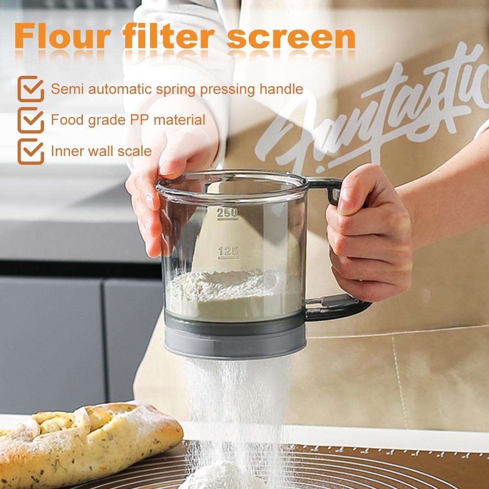 Пластиковый полуавтоматический ручной просеиватель муки Удобный фильтр для выпечки муки Домашнее кухонное сито для выпечки Инструмент для приготовления хлеба и десертов