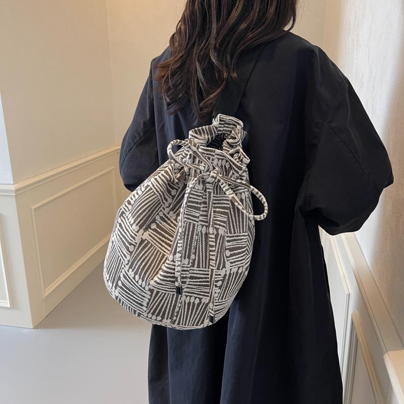 Большая вместительная цилиндрическая сумка со стандартным сетчатым отверстием и шнурком, универсальная сумка через плечо, новая коллекция осень-зима