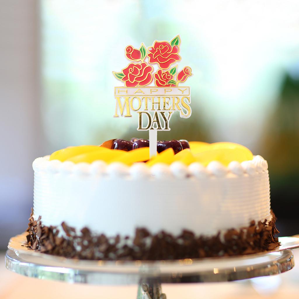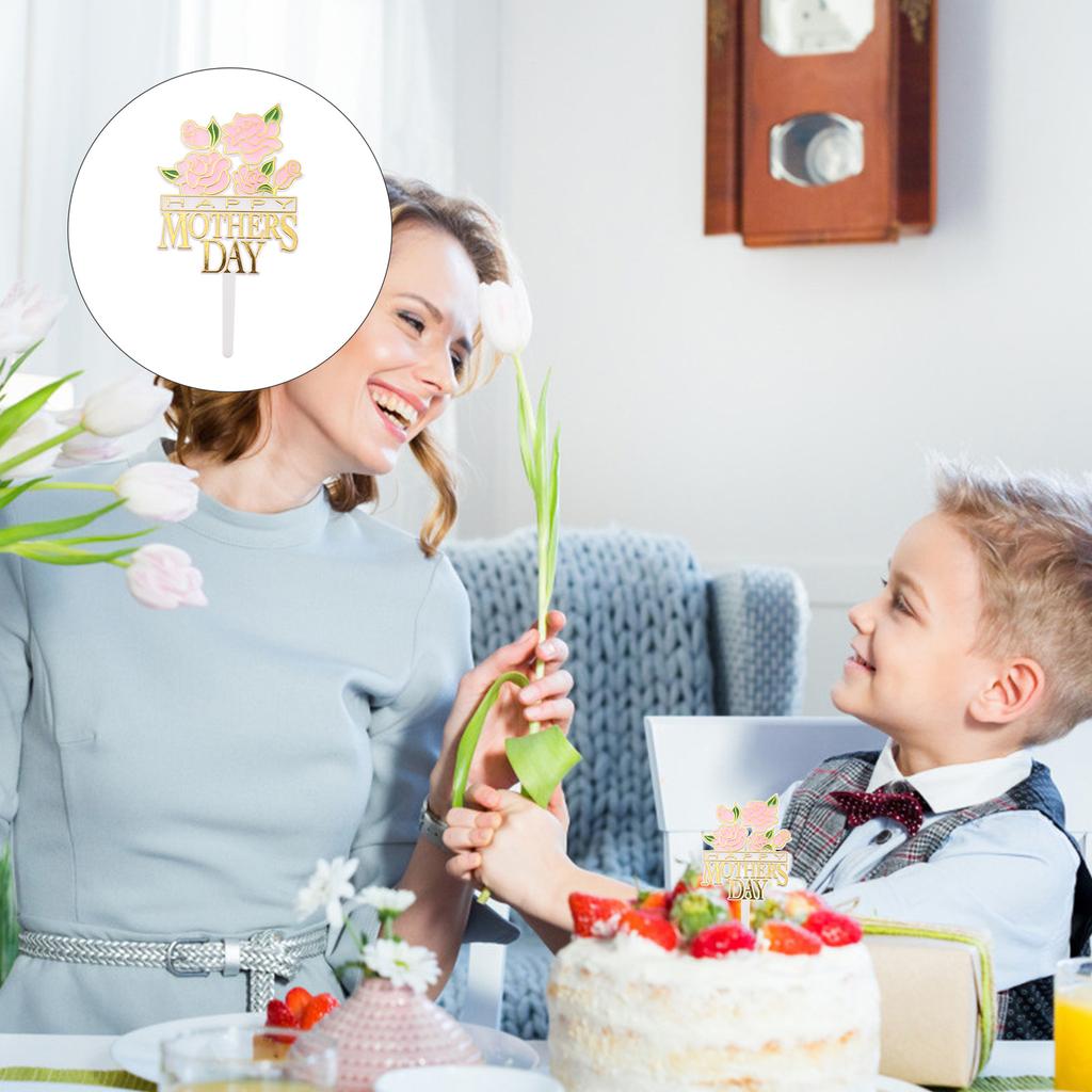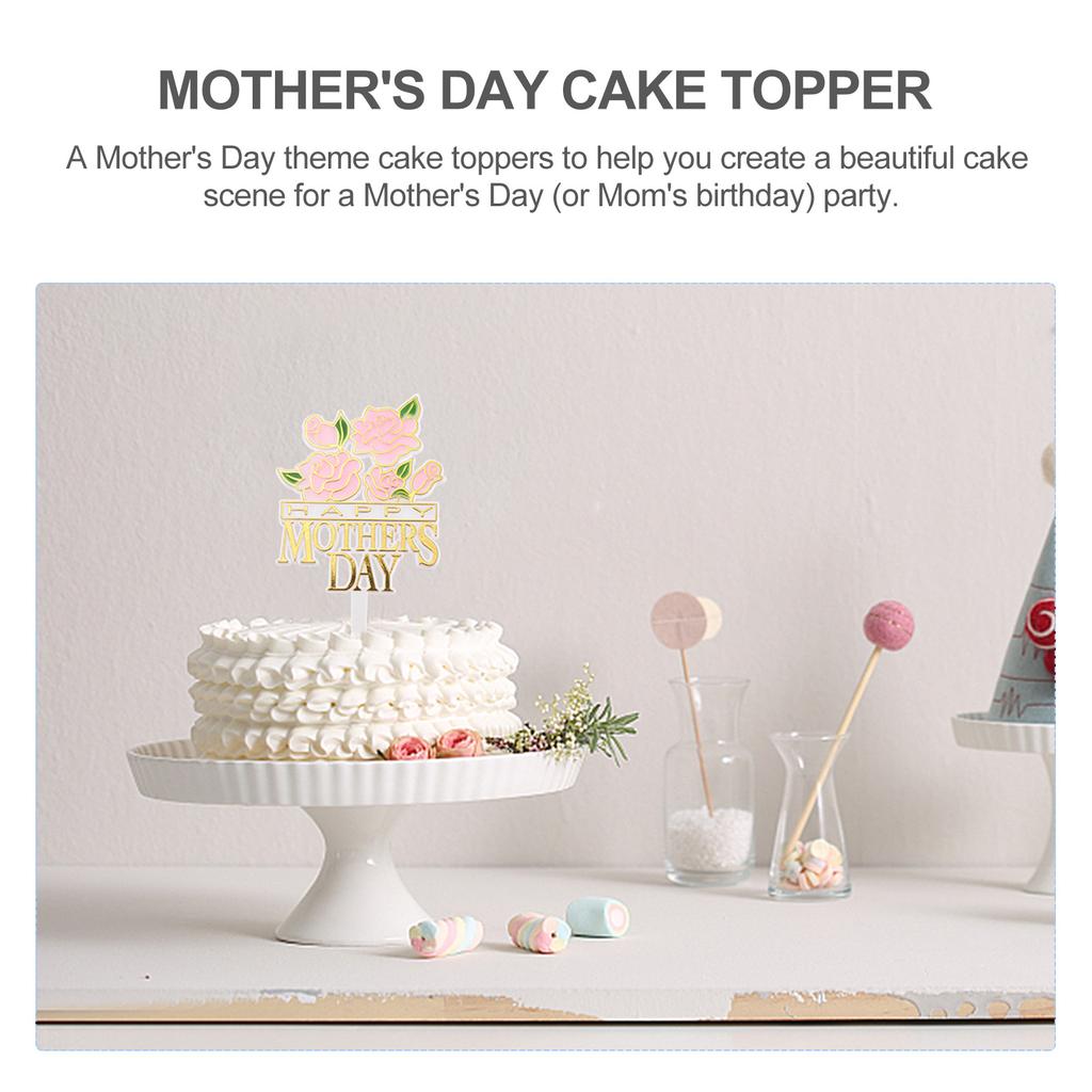 Mother's Day Card Gold Blocking Cake Toppers Decor Insert Rose Picks Dessert Plastic Party Supplies