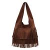 Ретро матовая сумка с кисточками для женщин, вместительная, мягкая ткань, строчка, хороший внешний вид, сумка на одно плечо, индивидуальность, новинка