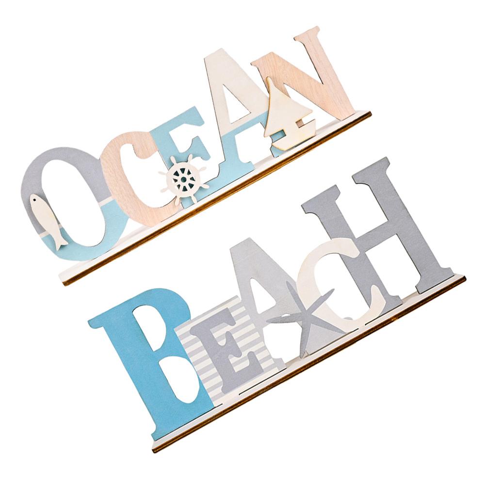2 шт. Морской настенный декор Декоративные украшения Синяя деревянная буква Столешница с прибрежным средиземноморским стилем