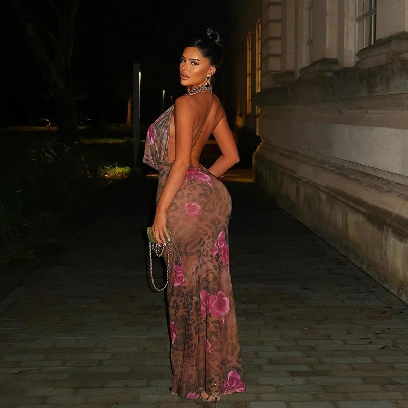 Сексуальное платье с бретелью через шею и карманом на шее с принтом, женское летнее платье Spice