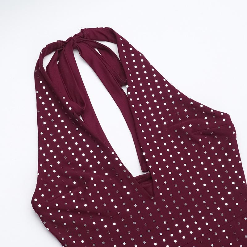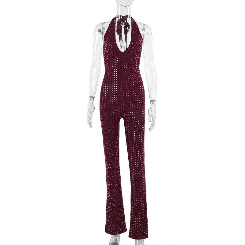 Холтер ворот сексуальный глубокий V-образный вырез Hot Drill тонкий Flash Slim Spice Girl мода повседневные цельные брюки женские