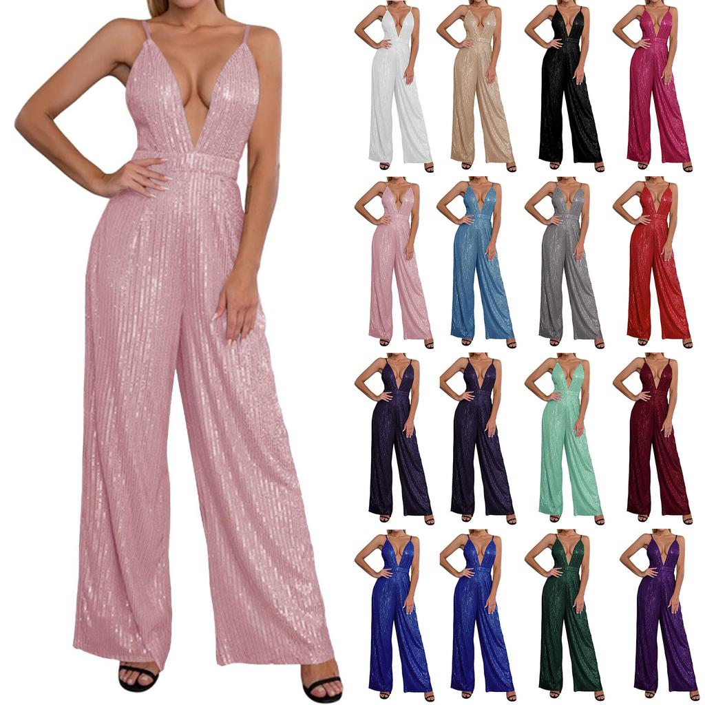 Женский модный повседневный комбинезон с V-образным вырезом, открытой спиной, без рукавов, с пайетками, однотонный — купить товар онлайн с бесплатной доставкой по всему миру!