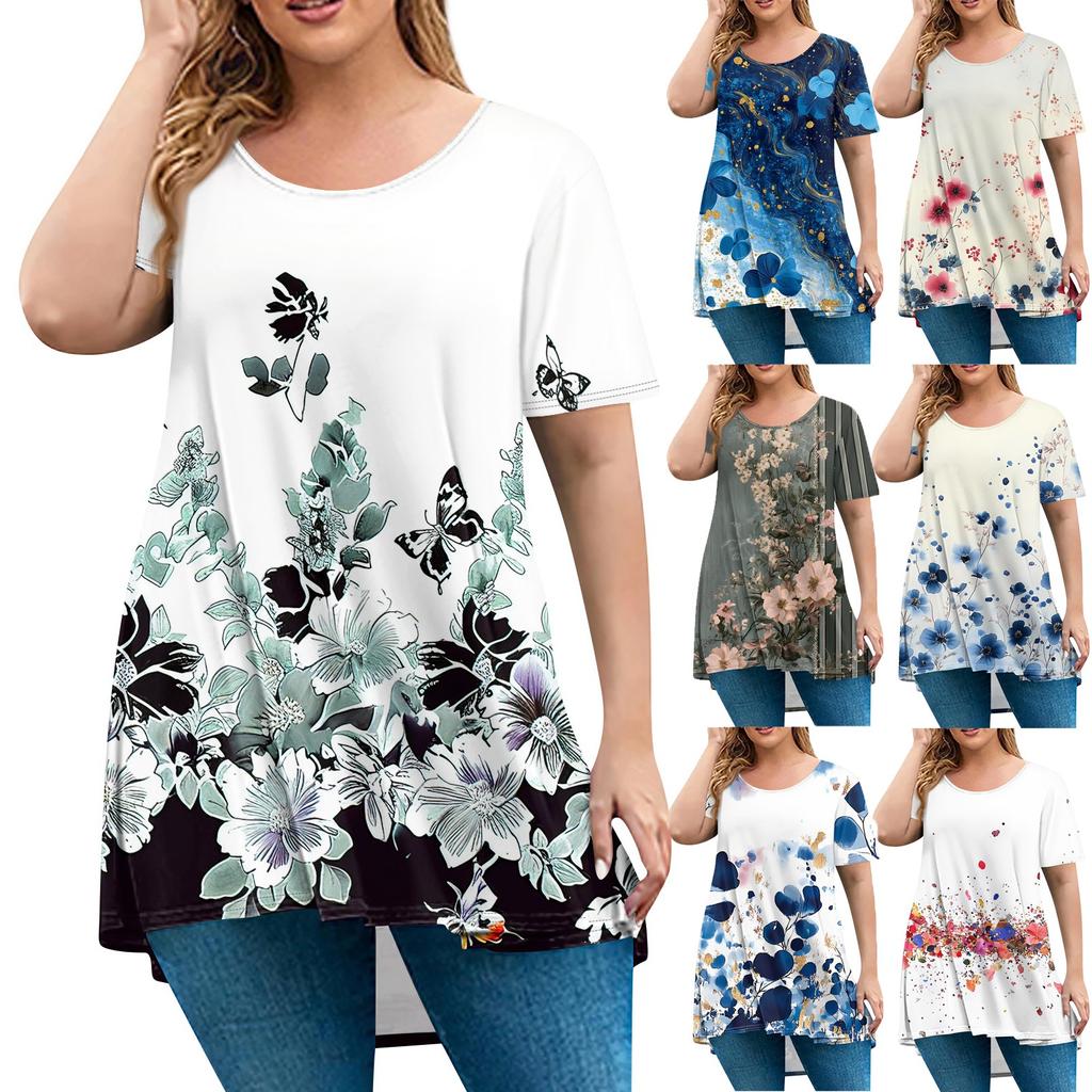 Женская мода большого размера с круглым вырезом и коротким рукавом, повседневный свободный пуловер с принтом — купить товар онлайн с бесплатной доставкой по всему миру!