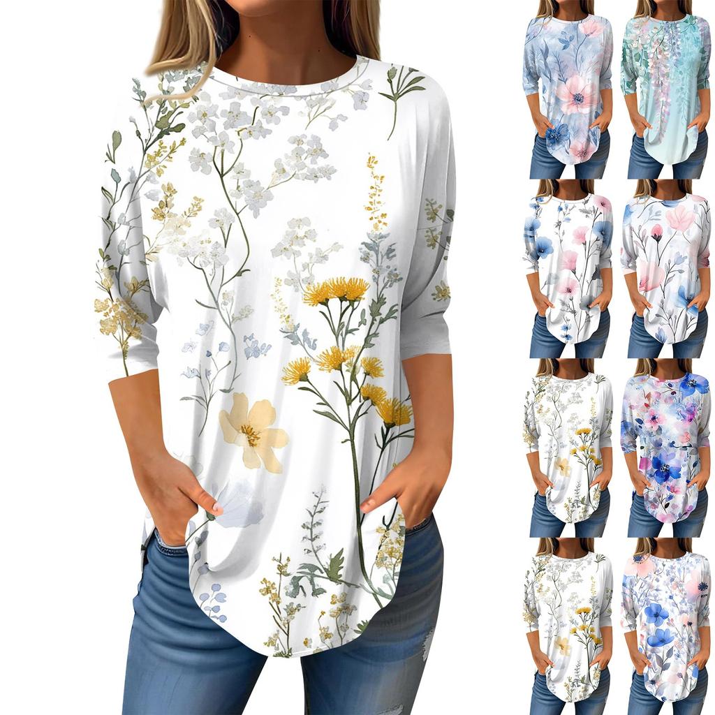 Рубашки с рукавом 3/4 для женщин, милые топы, футболки с рисунком, блузки, повседневные базовые топы больших размеров, пуловеры