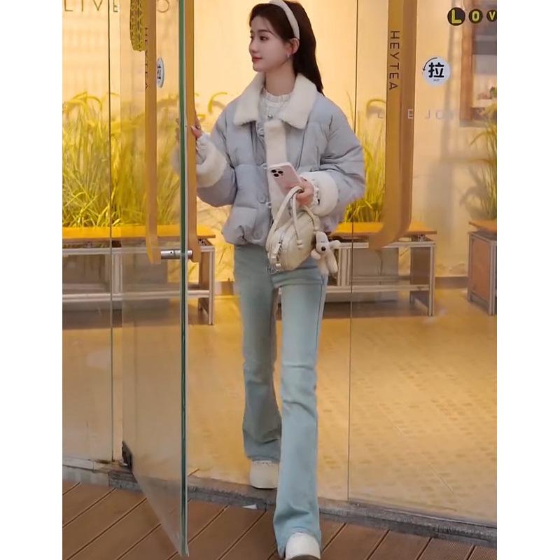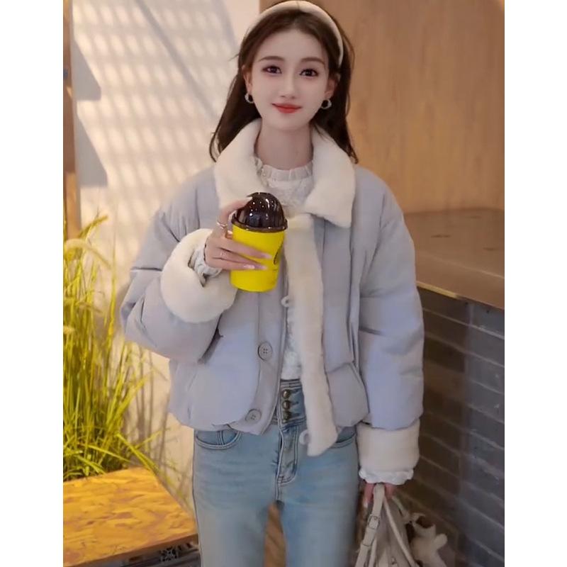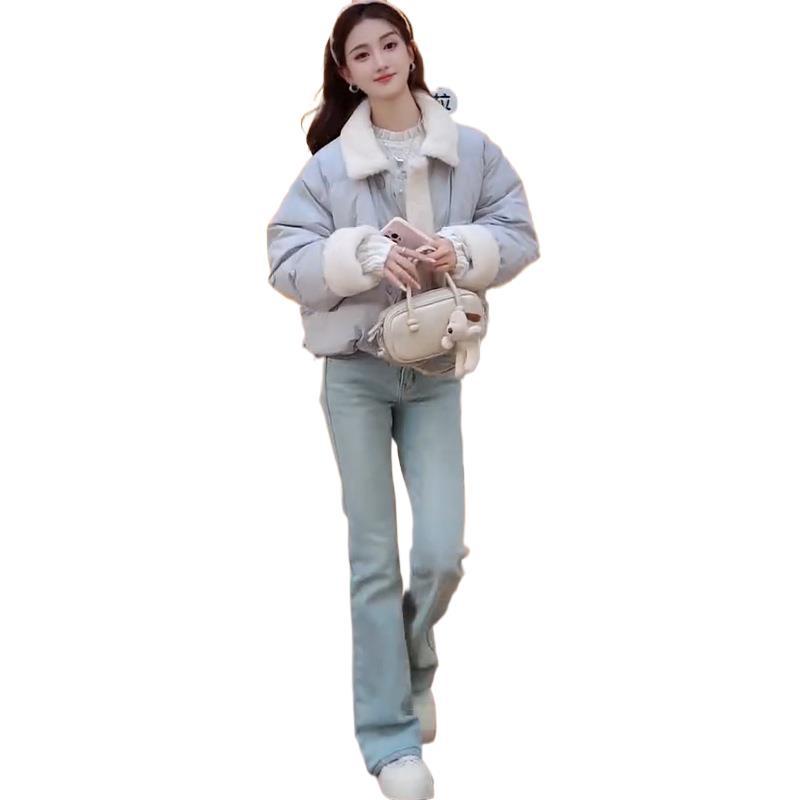 Пуховик с отворотом из овечьей шерсти, женский, зима 2024, новое модное свободное теплое укороченное пальто с эффектом старения