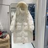 Пуховик женский средний и длинный с капюшоном утолщенный свободный зима 2024 новый студенческий белый пуховик до колена прилив