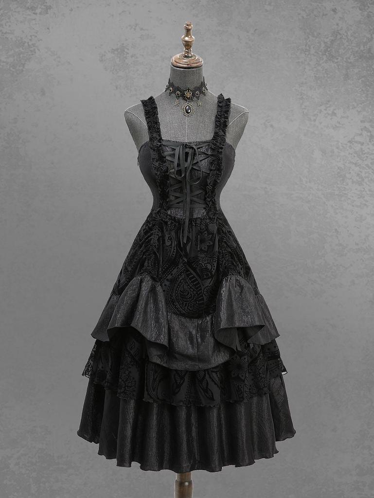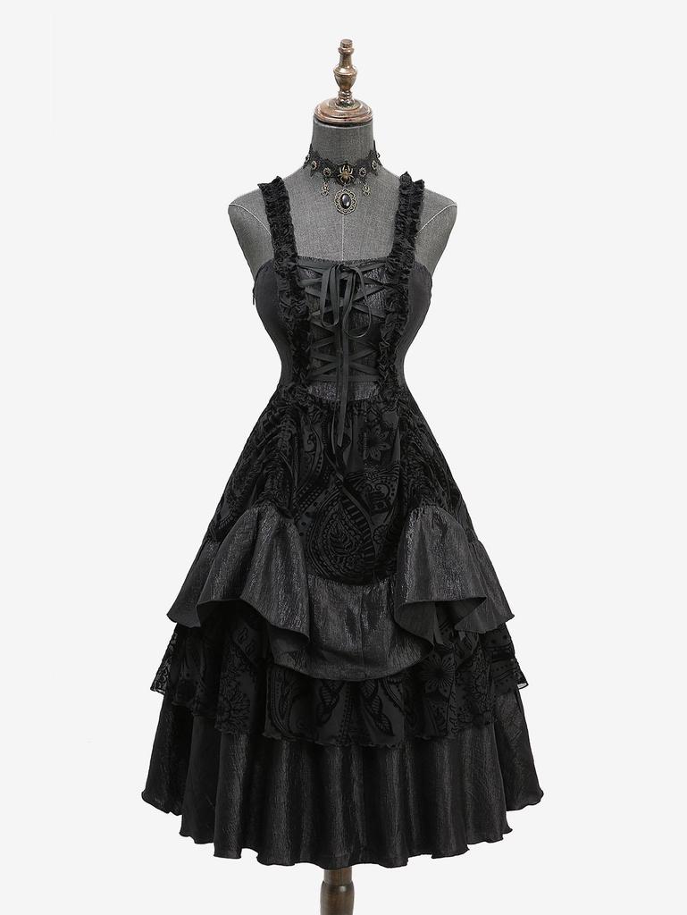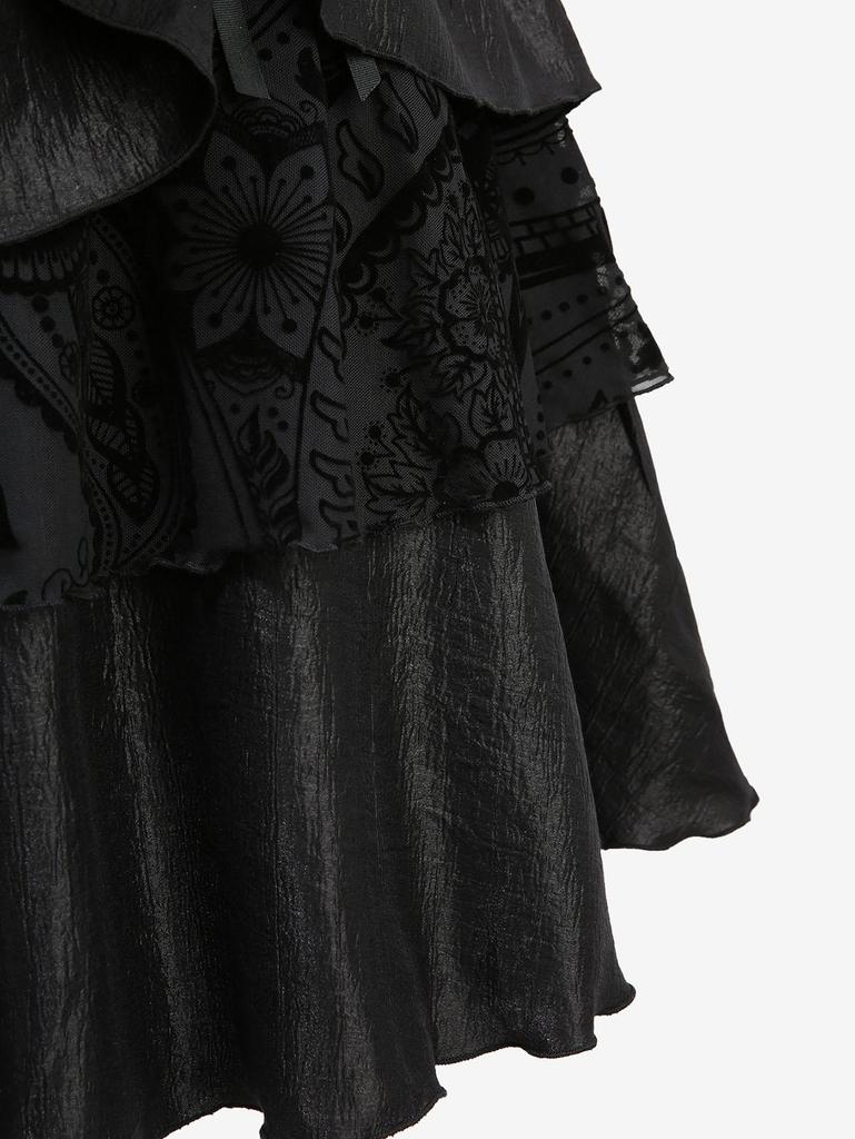 Rosegal Готический цветочный сетчатый узор с начесом шнуровка оборки многослойное А-силуэт текстурированное вечернее платье