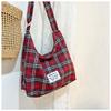 Осенняя новая клетчатая холщовая сумка в литературном стиле, вместительная, практичная, универсальная, для учебы, на одно плечо, через плечо