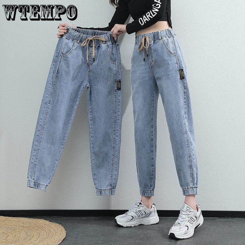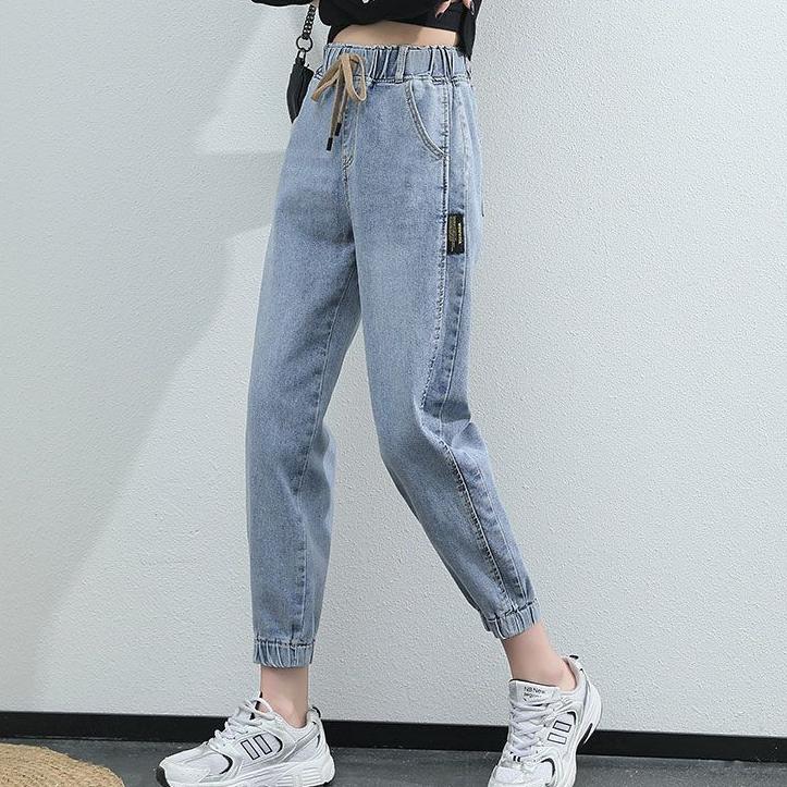 Джинсы женские весна-осень корейские свободные брюки узкие брюки с эластичным поясом Nine Point шаровары для женщин