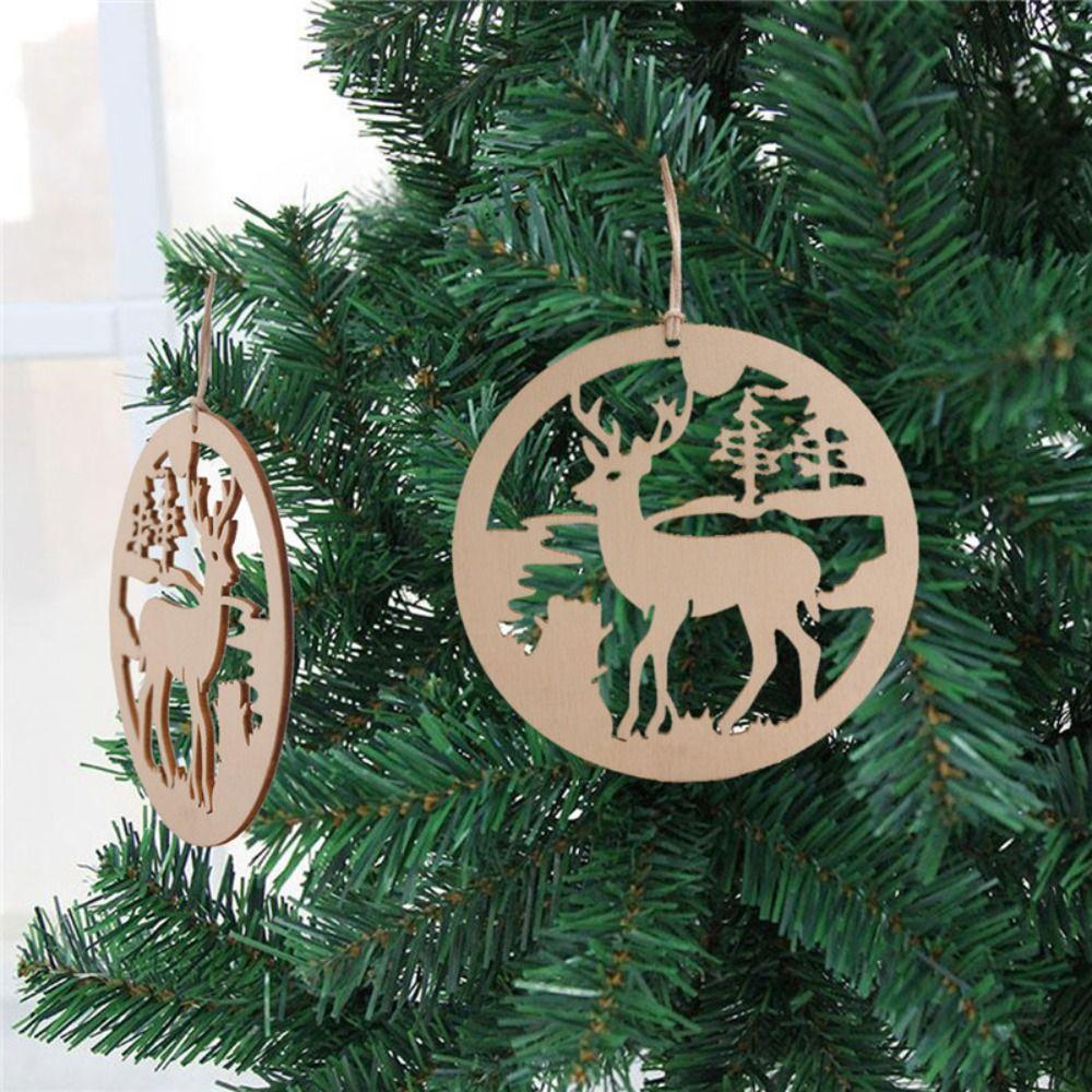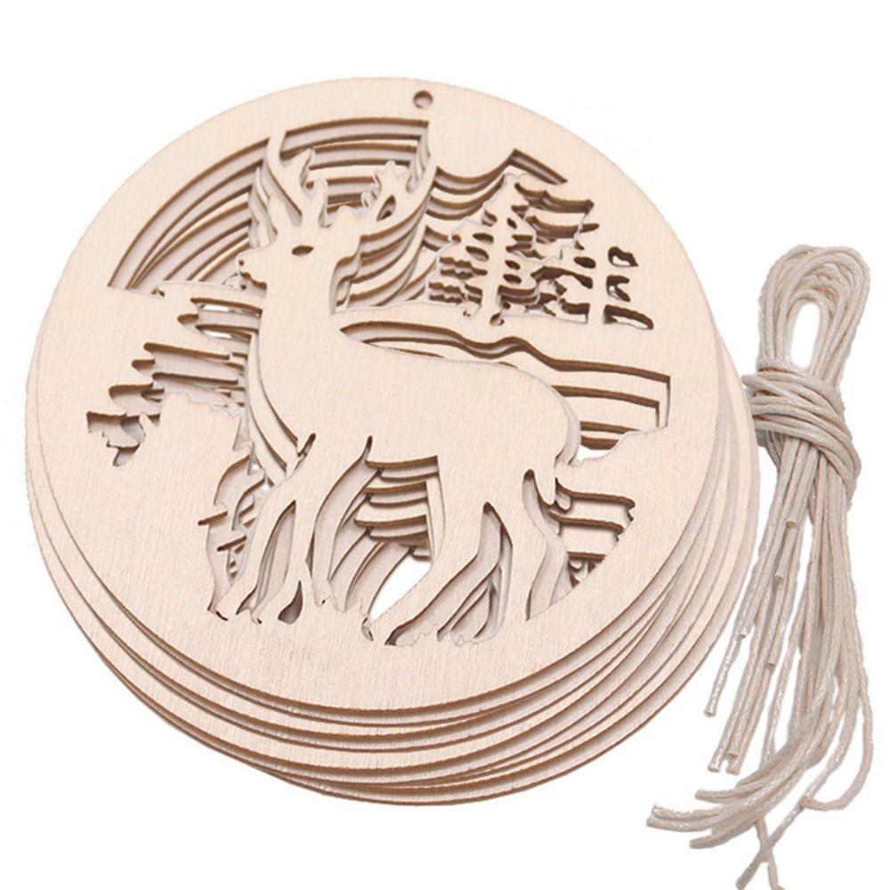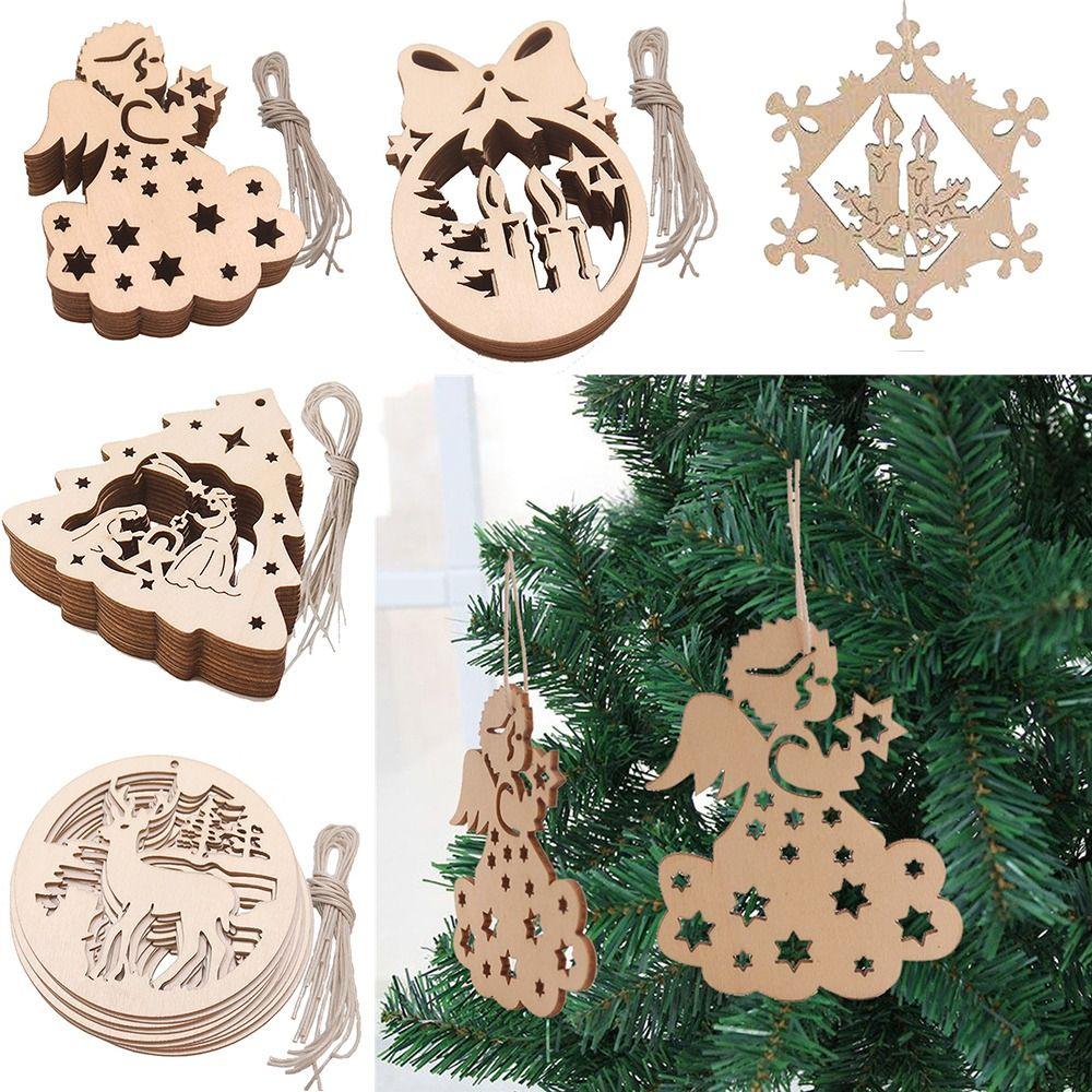 10 шт. подвесное украшение на елку, елочные украшения, полые резные деревянные подвески, домашний декор
