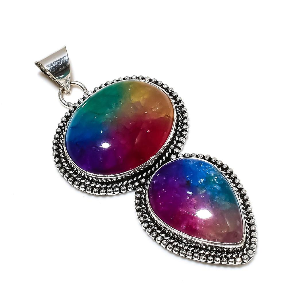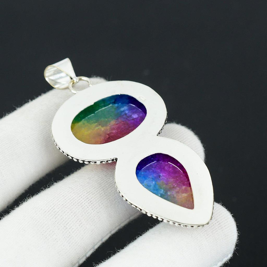Кулон из драгоценного камня Rainbow Solar Quartz, ручная работа, стерлинговое серебро 925 пробы, двойной кулон из камня, кулон из драгоценного камня высшего качества, подарки для друга