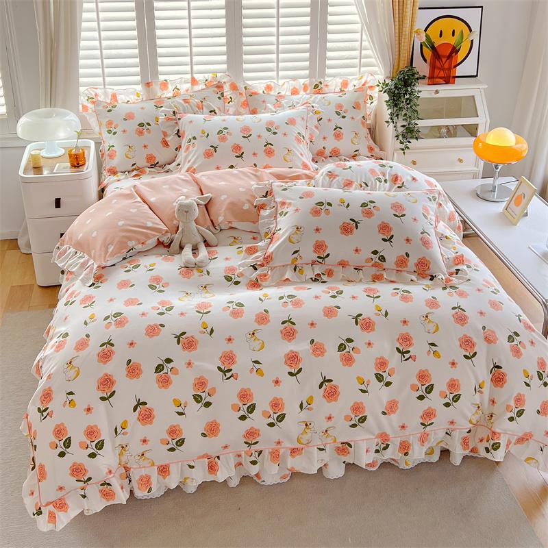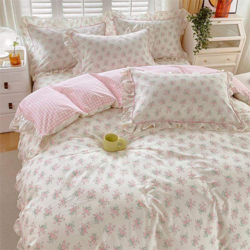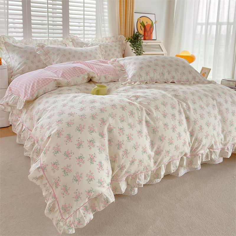 1 шт. Пододеяльник с оборками из чистого хлопка, покрывало для кровати в цветочном стиле, покрывало для девочек, пододеяльник (Нет наволочки)