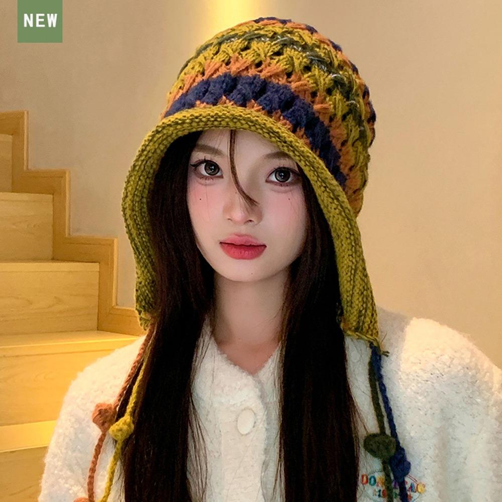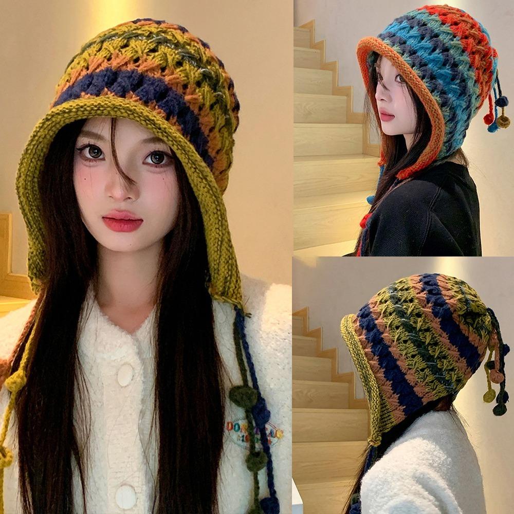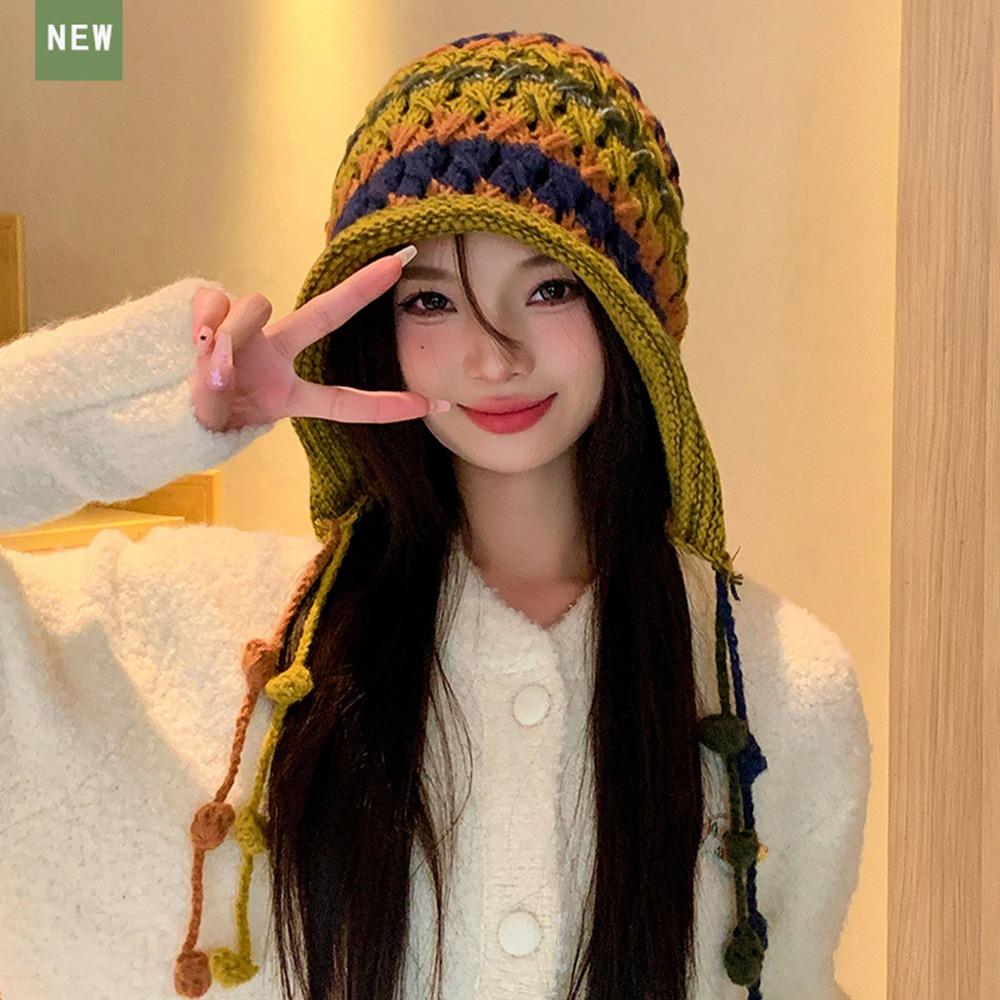 Цветная вязаная шерстяная шапка ручной работы теплая шапка-ушанка милая плюшевая шапка зимнее тепло
