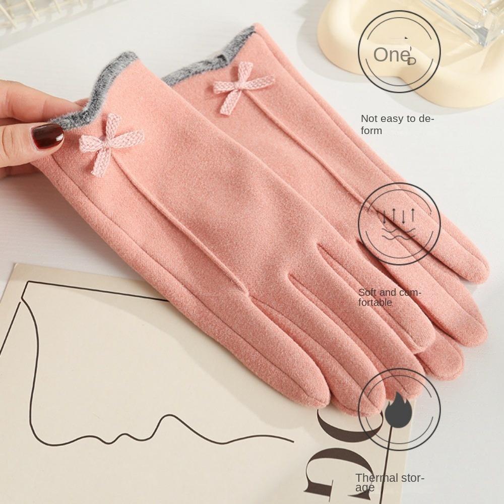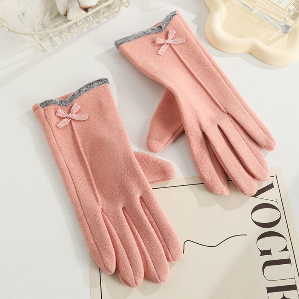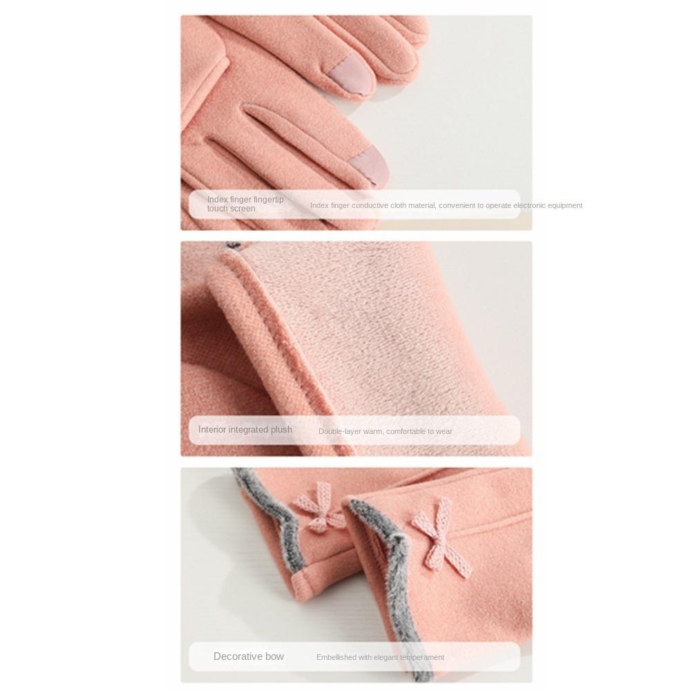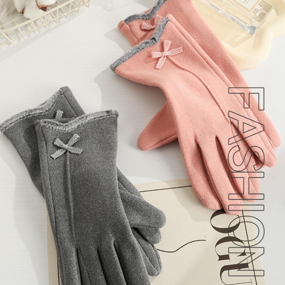 Перчатки для сенсорных экранов из кроличьего бархата, теплые перчатки с бантом по бокам, перчатки для пальцев, осень и зима